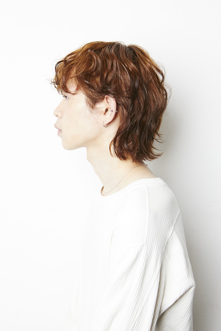 毛先のニュアンシーな動きがジェンダーレスな魅力を倍増。この繊細な束感はワンカールのパーマでラクに作れる。バームのサラッとした質感もバランス良好。