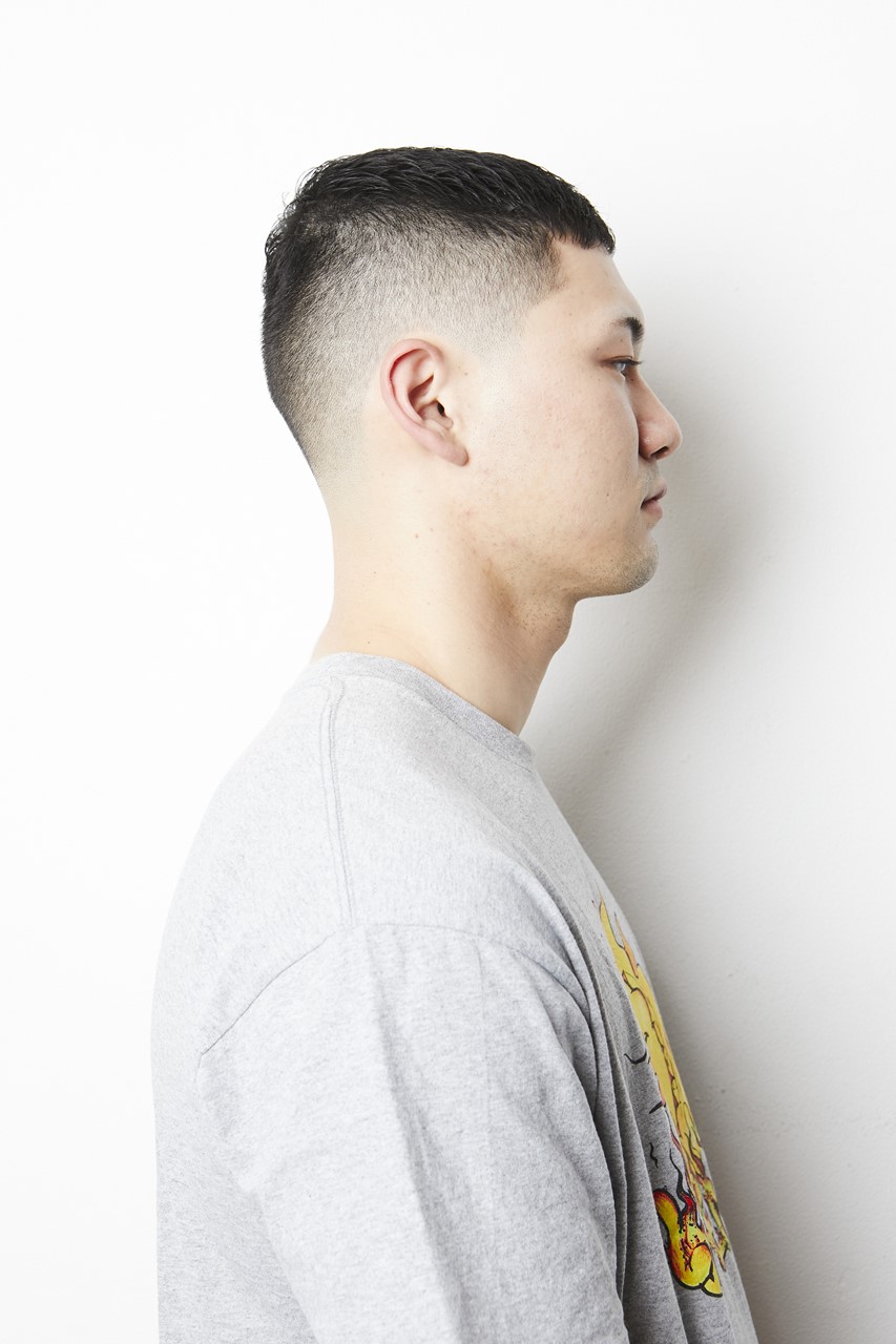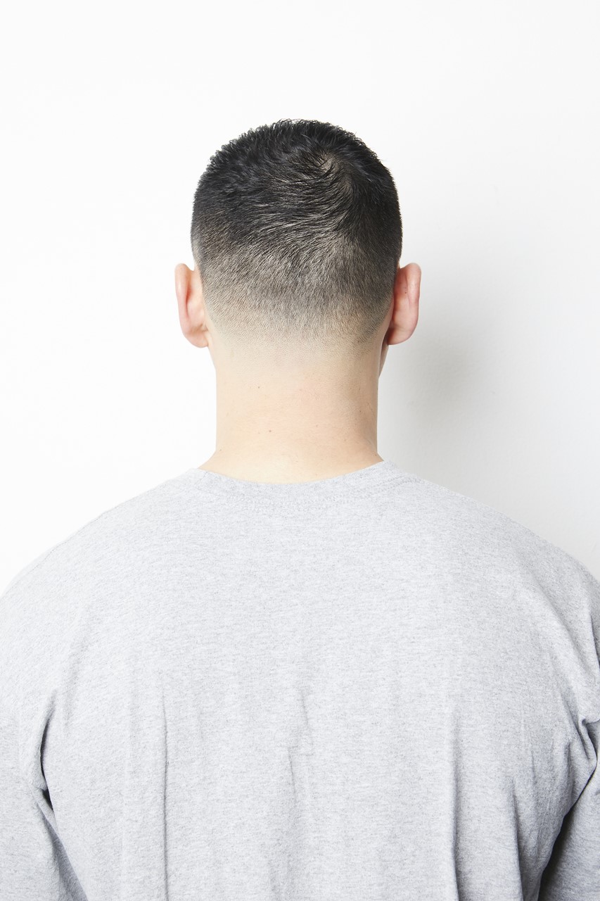 毛流れを後ろから前に変えることでミニマムでカジュアルなスタイルへと変身。さらに前髪はあえて揃えないことで遊びを取り入れ、ハードすぎない爽やかさを加味。