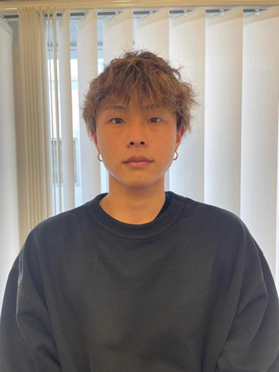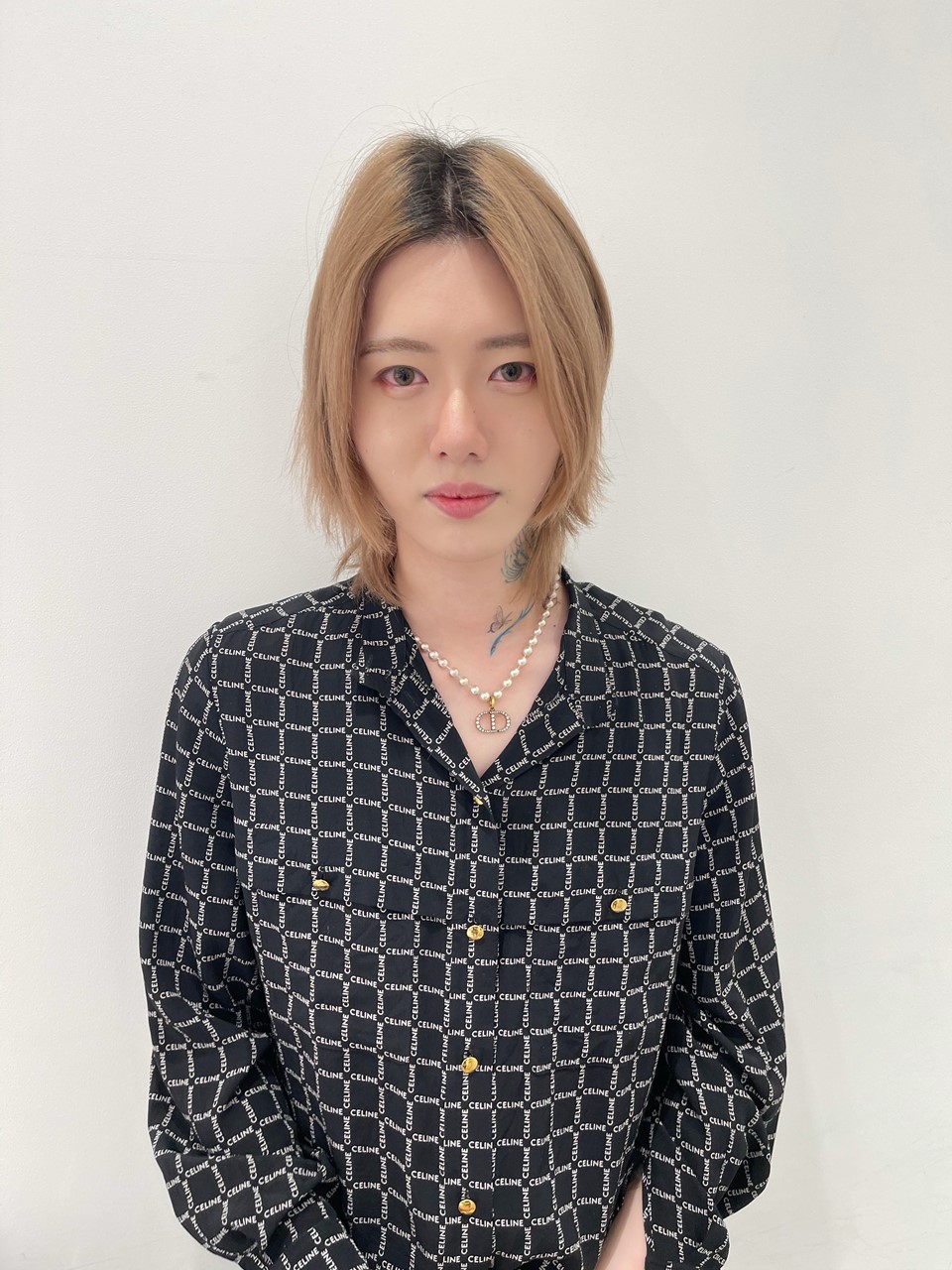 全体が伸びてきた印象でブリーチ部分の黄みも強め。色とシルエットバランスを整え、抜け感のあるヘアへ。