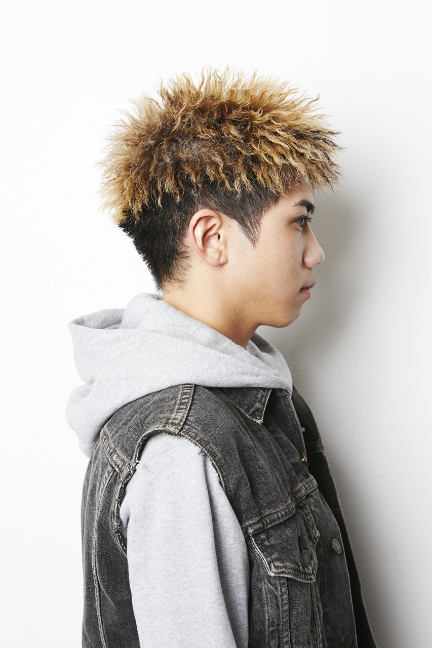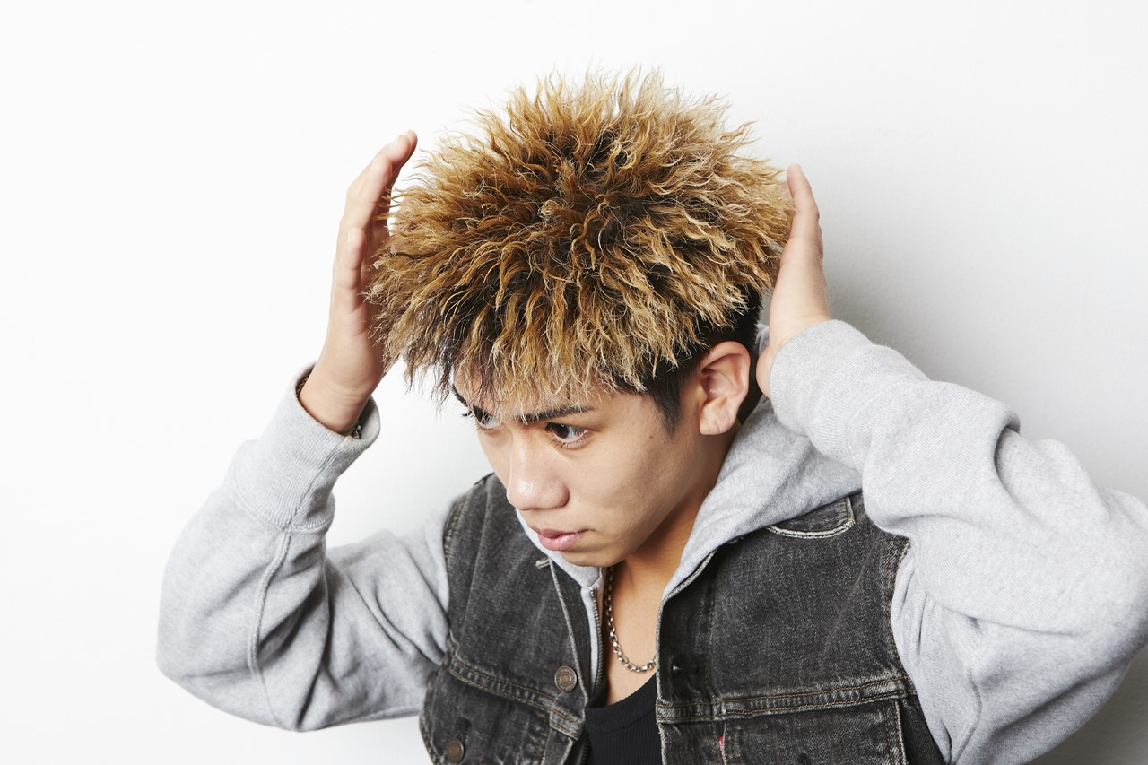 ストリートな雰囲気が似合う顔立ちを生かし、ハードなツイストパーマを主役にして大変身! この動きを生かすよう根元は暗めに残してカラーし、立体感も絶妙。