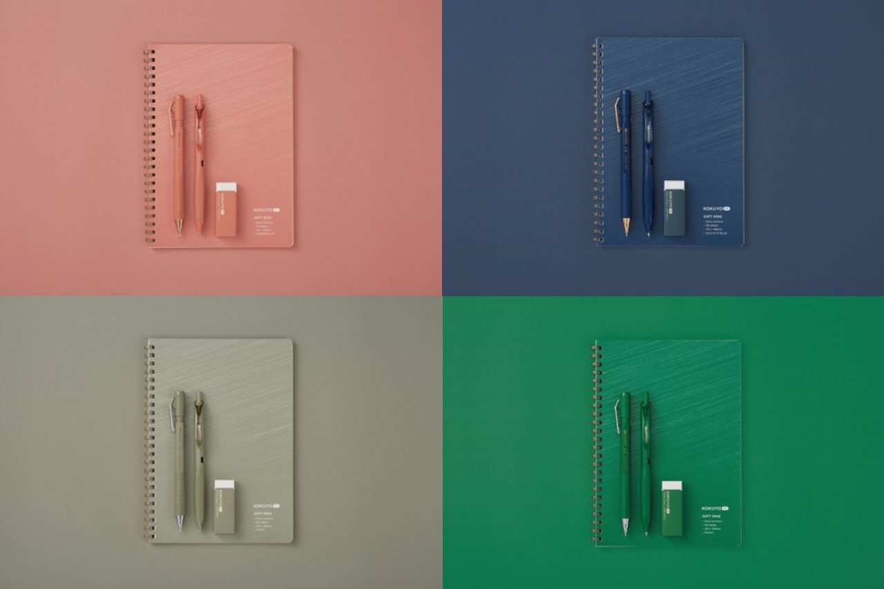 アイテムは、初めてKOKUYO MEを手に取る方でも取り入れやすいソフトリングノート、ボールペン、シャープペンシル、プラスチック消しゴムの4アイテムがラインアップされている。