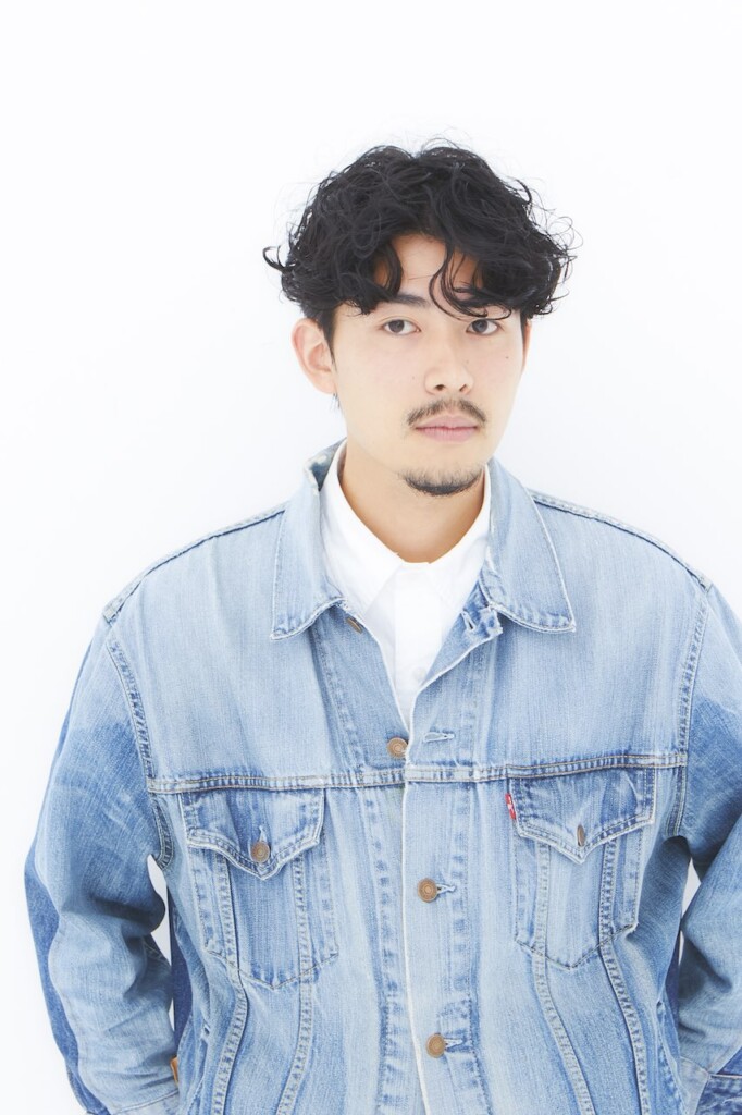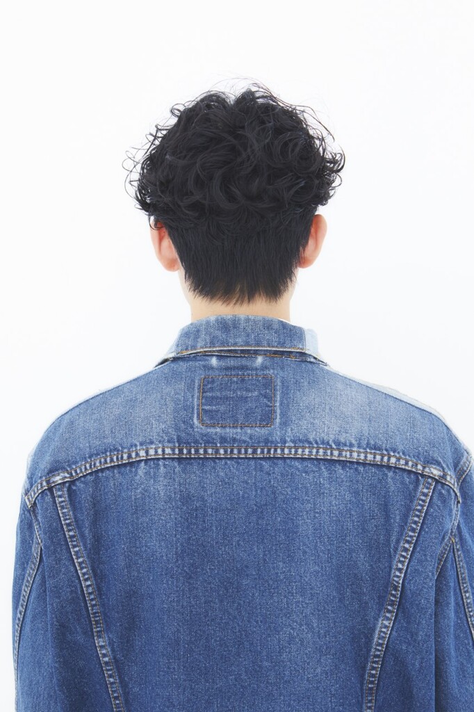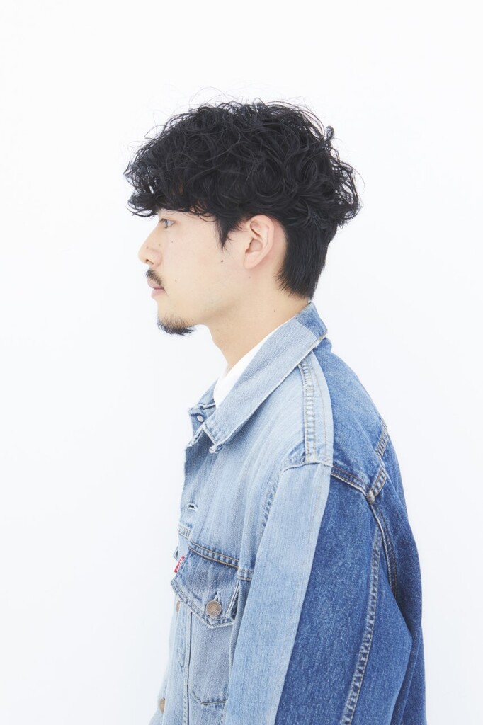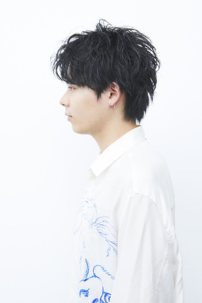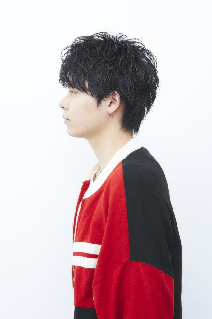 ウェットの状態でワックスをつけ、パーマの 動きを生かすようにくずさずに握って弱風でドライ。太めの束感にほぐしてツヤを演出。
