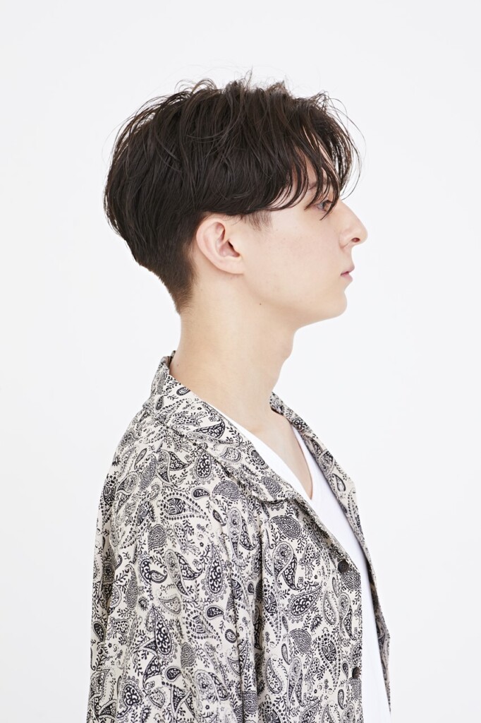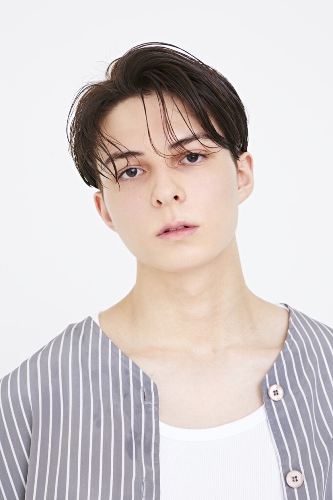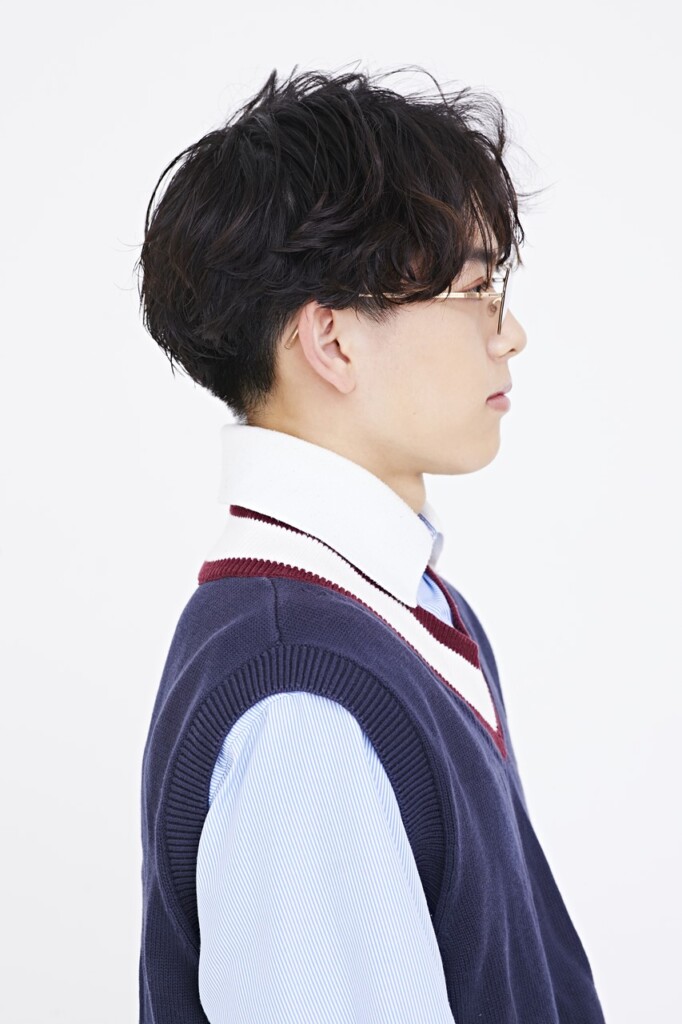 韓流マッシュにツイストスパイラルをプラスした進化系。全体にマット系ワックスをもみ込んだら、顔まわりをおおうようにマッシュラインを整え、束感を調整。ボリュームが出すぎないようにシルエットを整えるのも忘れずに。