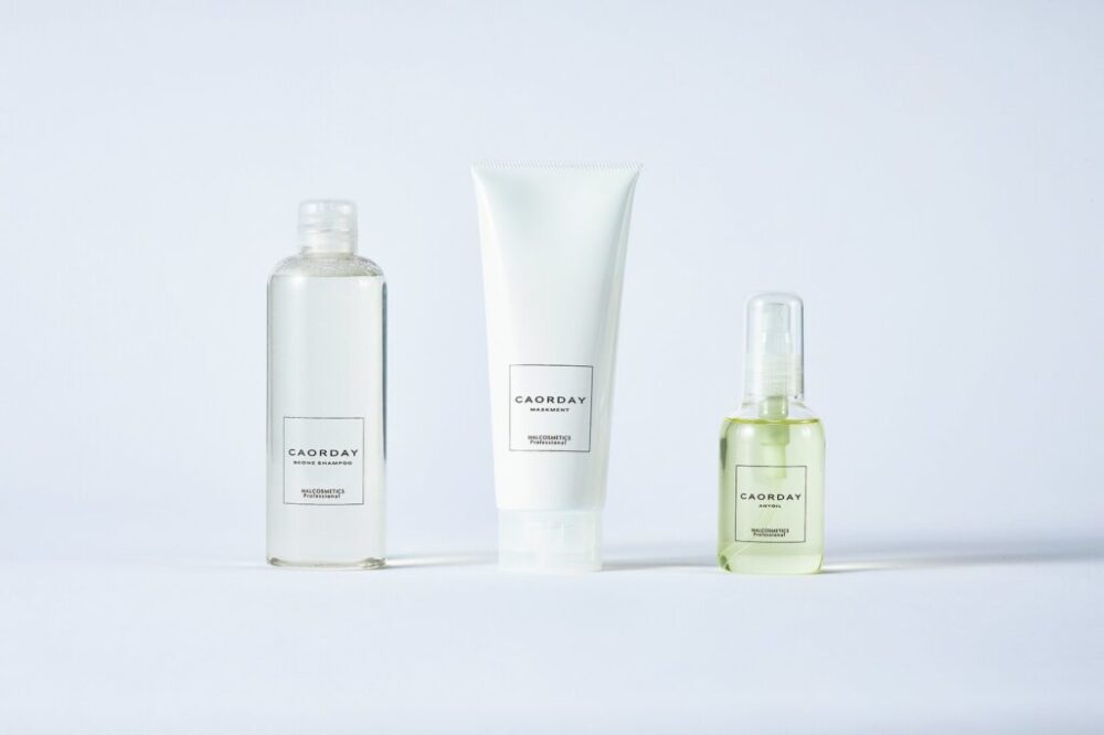 写真:カオルデイ ビーワンシャンプー(左)300mL・3,030円/1000ml(詰替用)・7,260円、マスクメントホームケア(中央左)200g・4,240円/1000g(詰替用)・13,640円、カオルデイ エニーオイル(中央右)120mL・3,300円、カオルデイ オイル ローズブーケ(右)120mL 3,740円