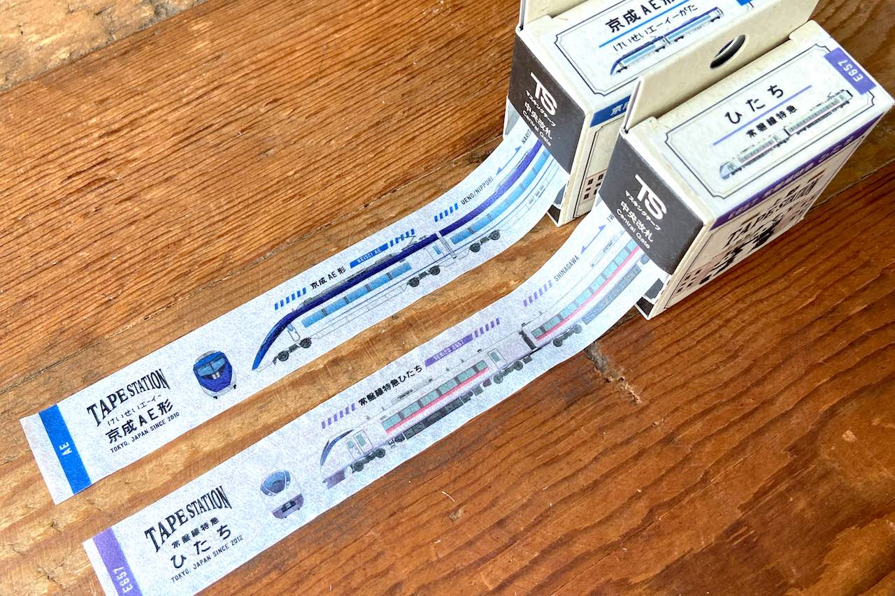 本製品は梱包資材の製造・販売を行うロジファクトとの協業で、実在する鉄道車両を忠実に再現したマスキングテープのシリーズ。第1弾の【東京】、第2弾の【渋谷】、第3弾の【新宿】に続く最新作は、上野駅を走る「E657系ひたち」「京成スカイライナーAE形」ほか、JR東日本の新幹線や在来線など全9種類をラインナップした。