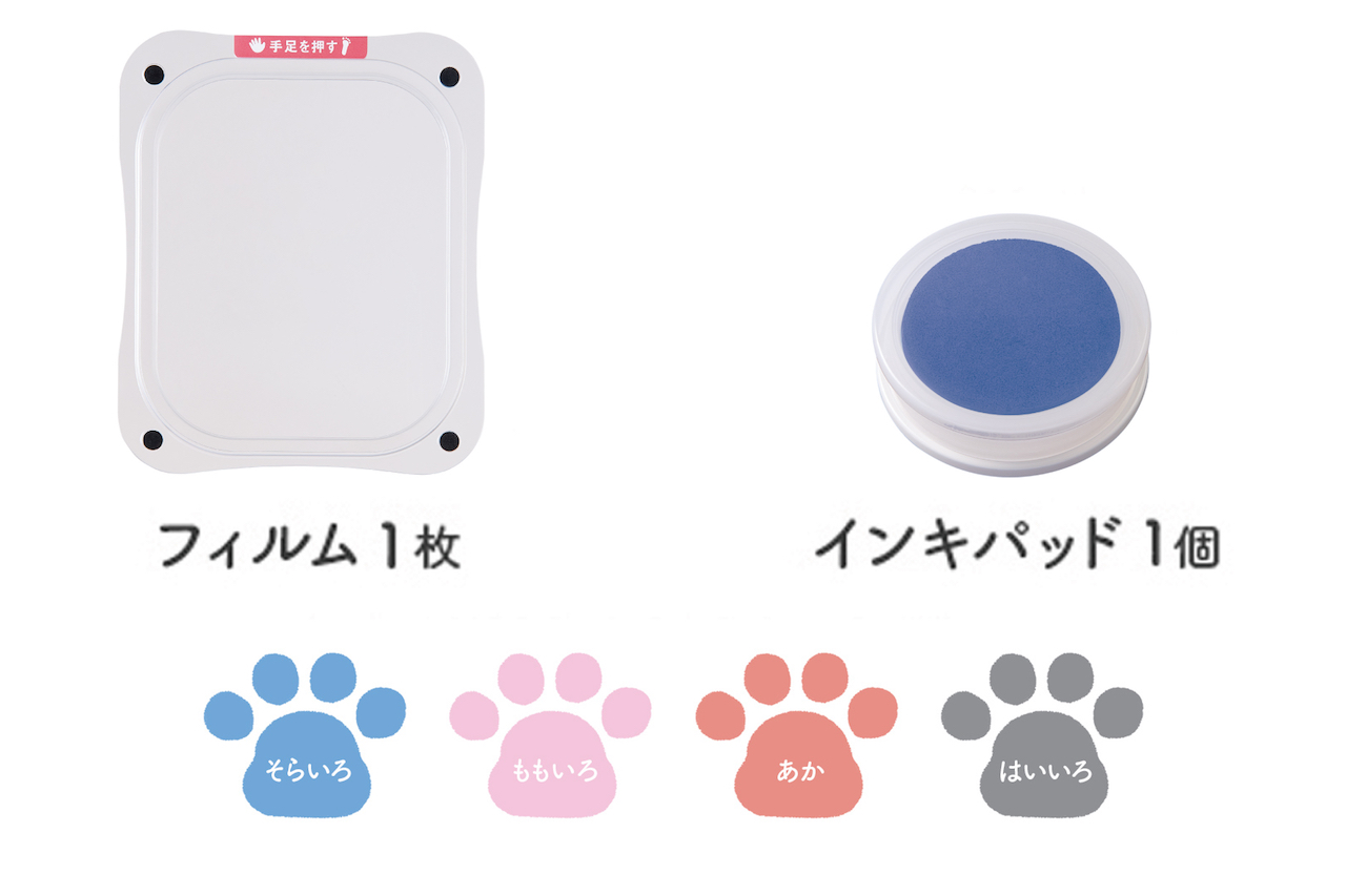 使用方法は、付属のインキパッドを使いフィルムにインキを塗り、フィルムの上から足形を押すことで、直接インキに触れずに紙に足形を転写できる。