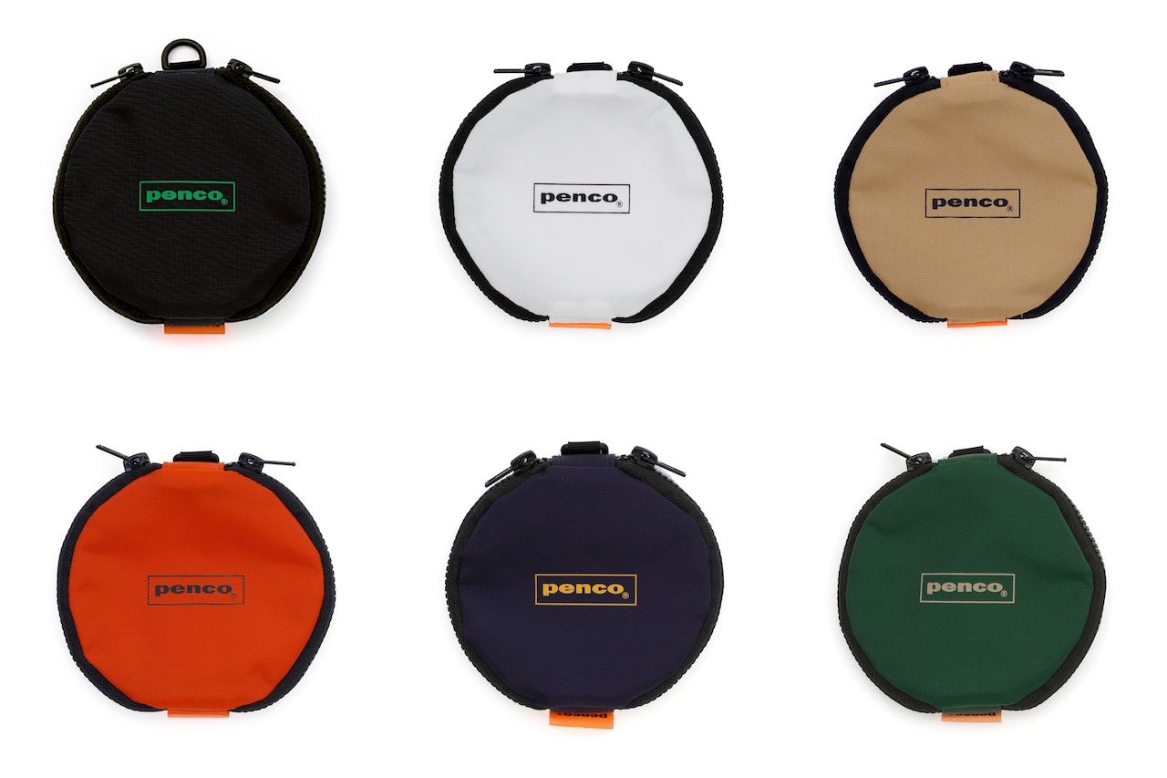 両サイドにそれぞれ独立したポケットがついた丸型のファスナーパース。絡まりがちなイヤホンや小銭・カードなどを分けて収納することができる。Dカン付きで別売りのコードストラップと組み合わせて首から下げたり、カラビナを付けてベルトやバッグに取付けたりと利便性が高い。