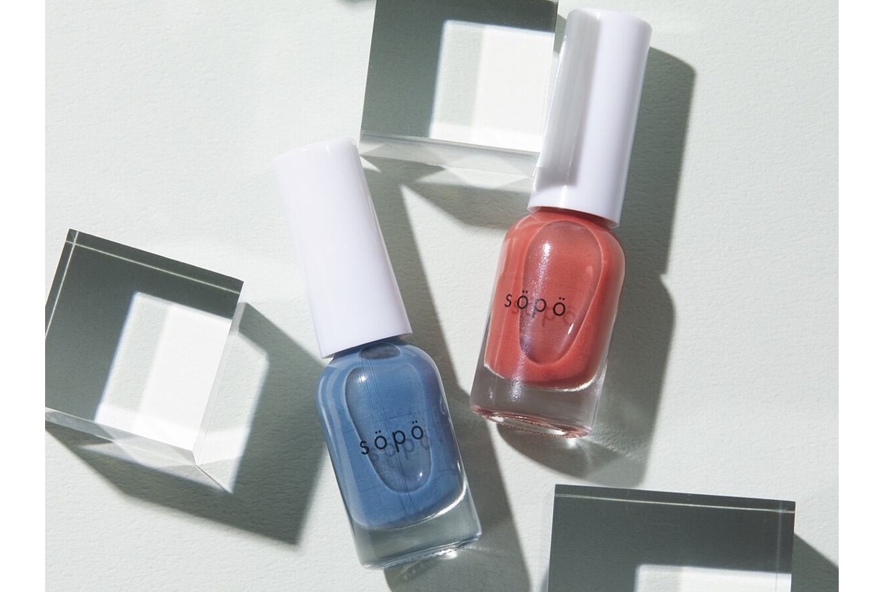 テレビや雑誌等の最前線で活躍中のメイクアップアーティストをシーズンごとに迎え、メイクアップアーティスト自身も「欲しかった」と思うカラーバリエーション、品質の高い商品を、手に取りやすい価格で実現。そんなsopoの中でも、550円(税込)と手に取りやすい価格&豊富なカラーバリエーションが人気の「ネイルポリッシュ」から、限定カラー2色を発売する。