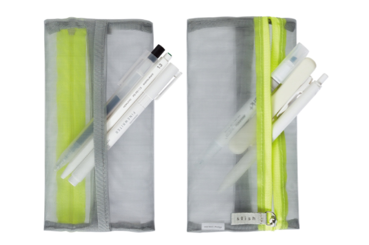 コクヨは、スリットとファスナーの2タイプ仕様のポケットを備える、メッシュペンケース「スリッシュ」を6月14日(水)から発売。