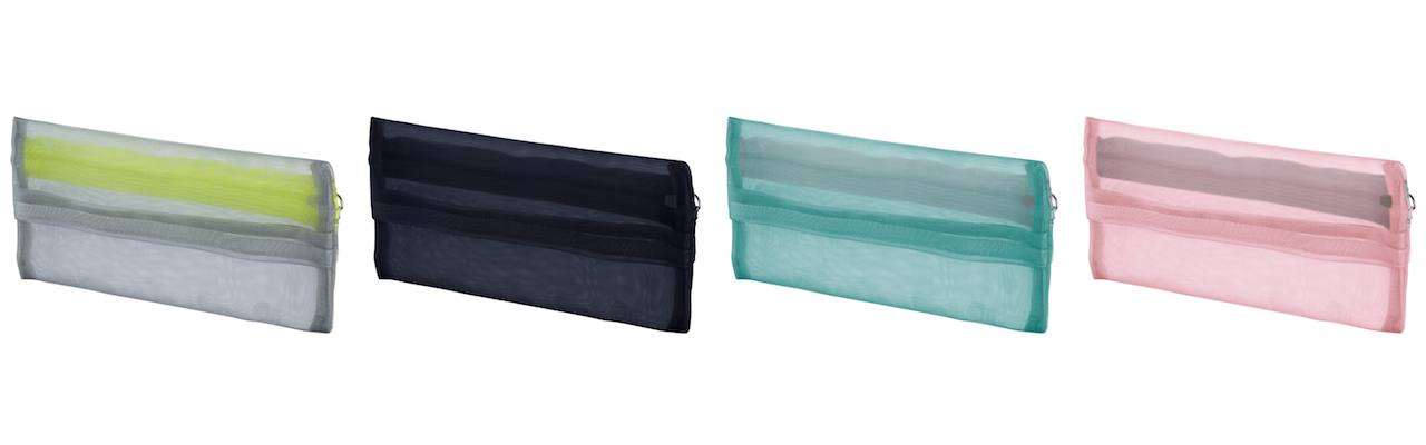 素材はほどよく透けるメッシュで中身が確認でき、カラーバリエーションはシルバーグレー、ネイビー、エメラルドグリーン、ライトピンクの4色となっている。
