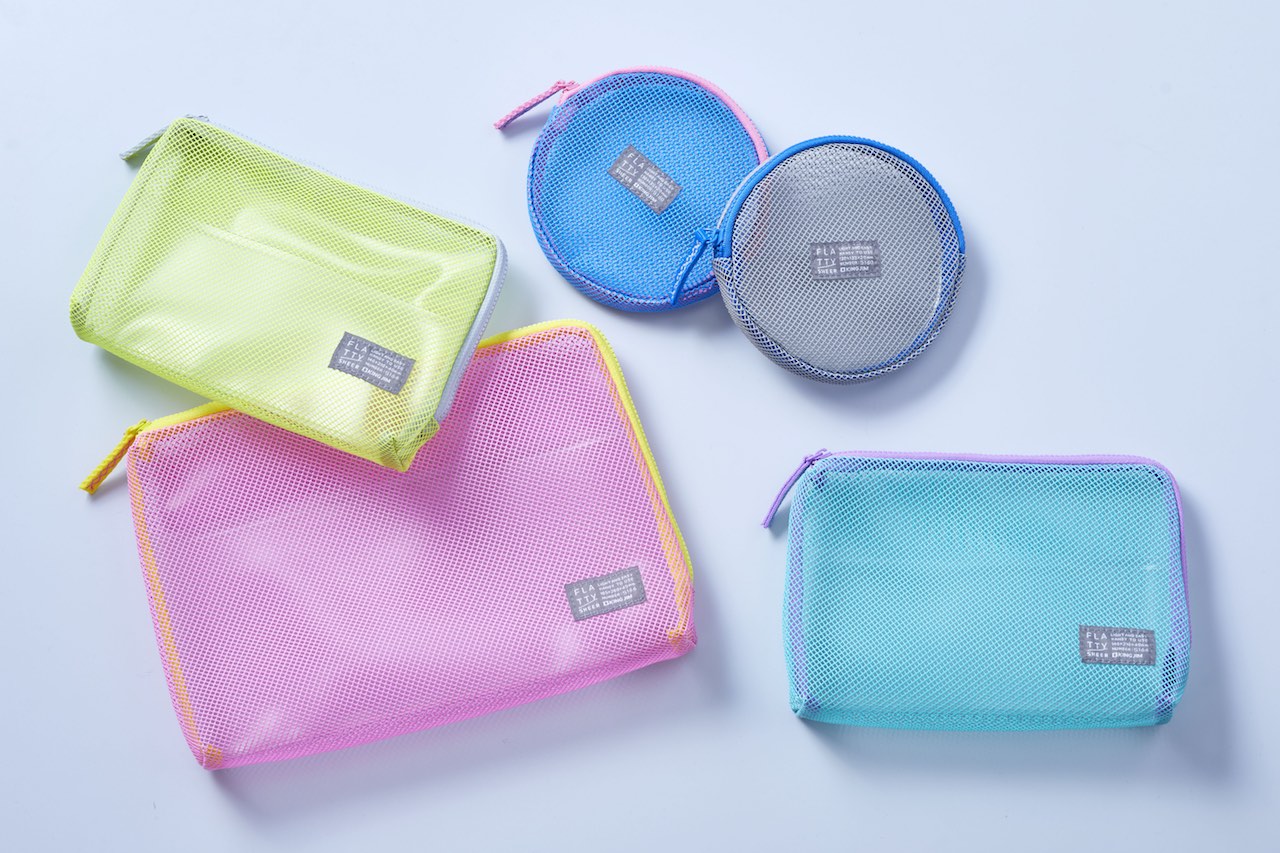 今回、その「フラッティ」シリーズに新たにメッシュ生地を採用した「フラッティ シアー」を追加します。「フラッティ シアー」は軽量で型崩れしにくい「フラッティ」の機能性を活かした、メッシュ生地のポーチシリーズ。