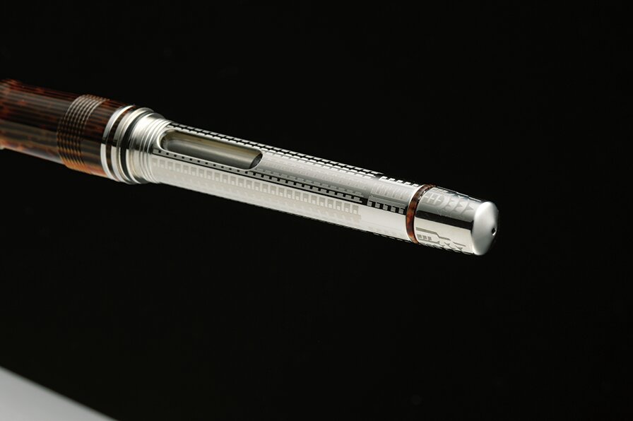 1940年代に生まれた「ドーリック」を再現した注目作。12 面体にカットしたアールデコのデザインの軸は、握りやすいだけでなく、独特なエレガントさをまとっている。コンプレッサー吸入式を採用している。