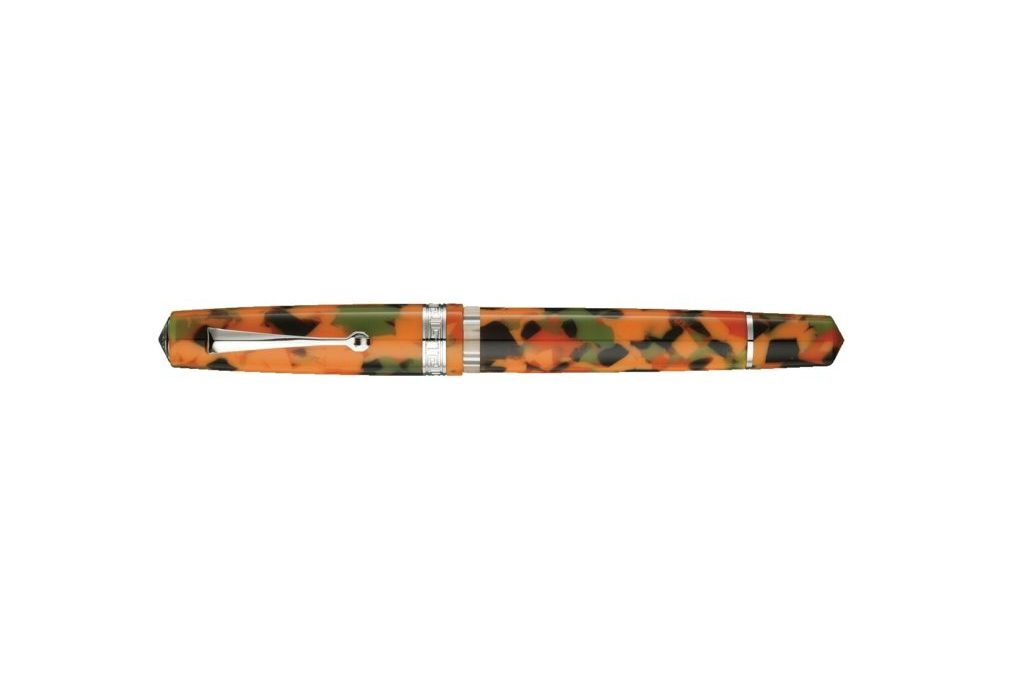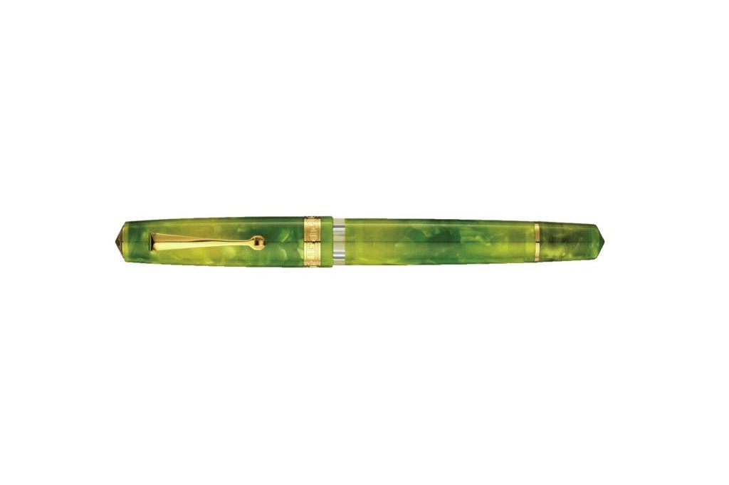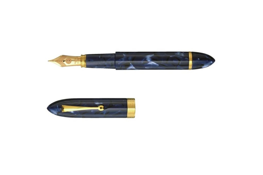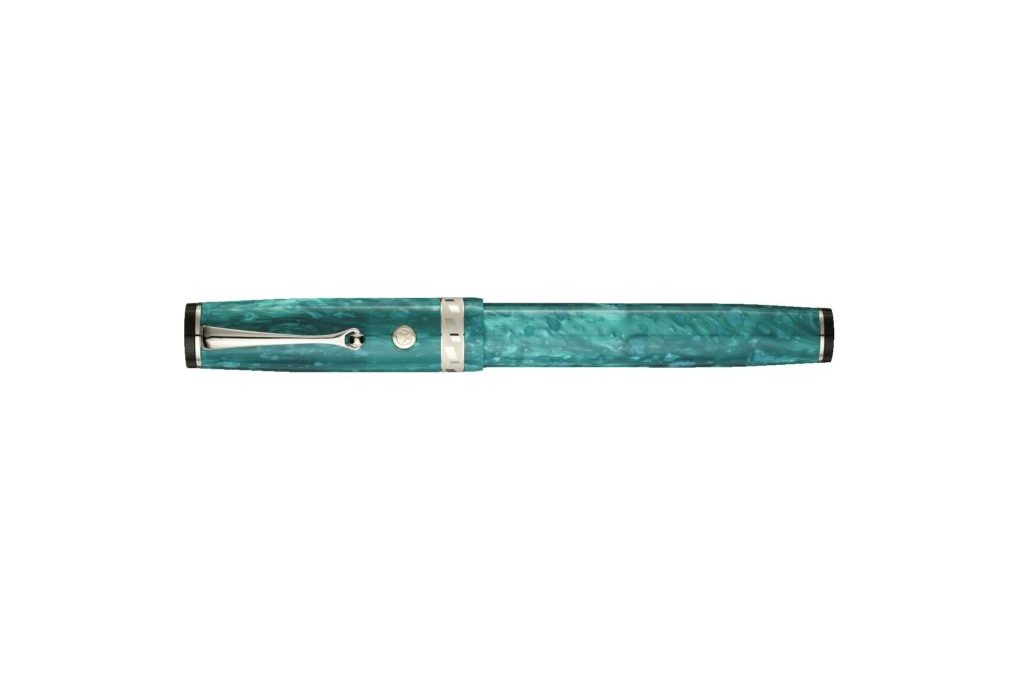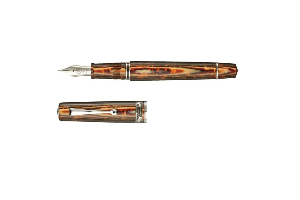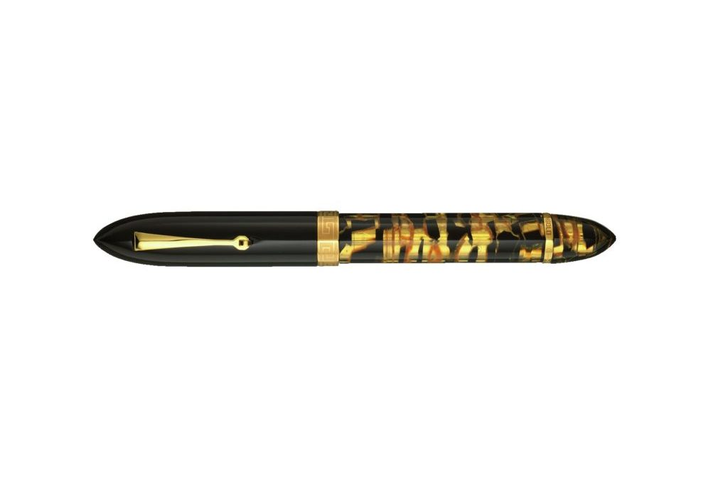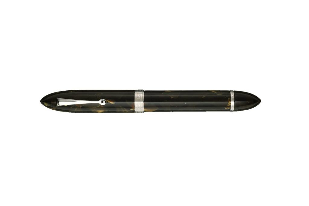 アルマンド・シモーニ・クラブの代表的モデル。セルロイド製の軸が美しいマーブル模様を描く。「グレート ギャッツビー ロジウム トリム」には、オマスでもその見た目の美しさが好評だった「アルコ ブロンズ」という素材を採用している。