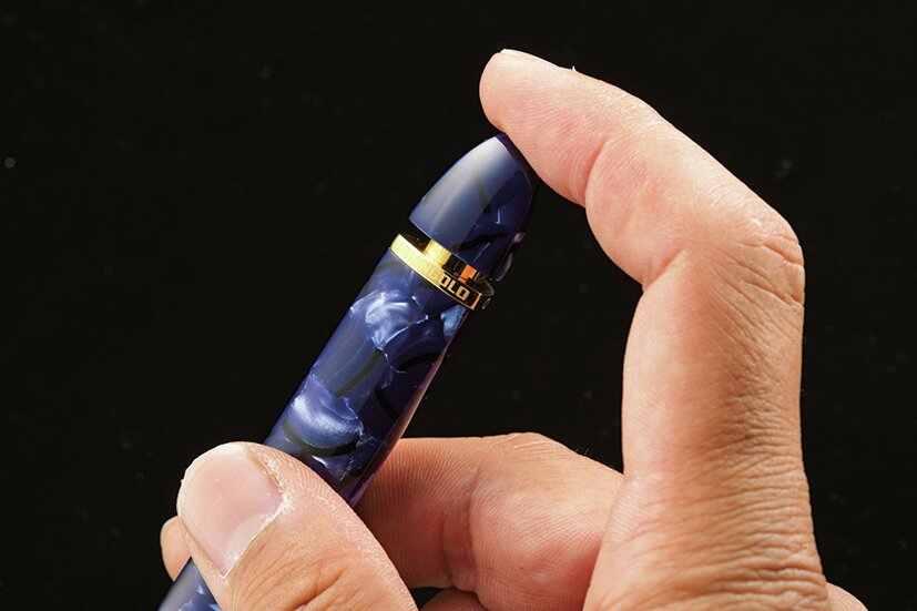 「トリアンゴロ」とはイタリア語で「三角形」の意味。オマスの代表作だった三角軸の万年筆を再現している。三角軸は握りやすく、大型のペンにしては使いやすい設計も魅力。「コンプレッサー吸入式」という独特の吸入方式にも注目してほしい。
