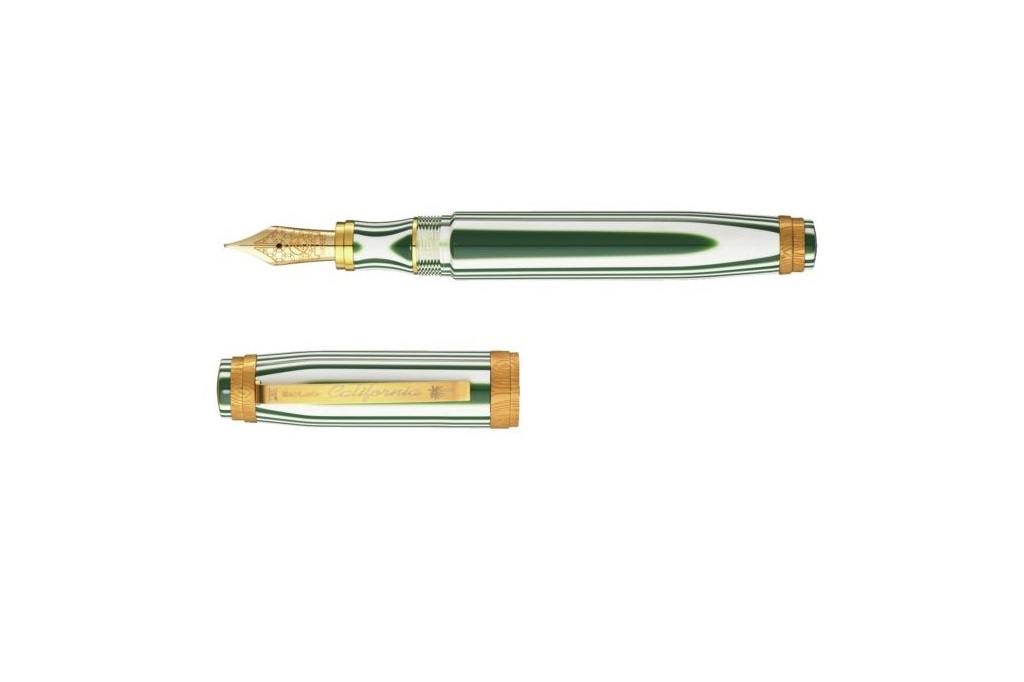 カリフォルニアの豊かな緑がモチーフ。こちらも軸にはセルロース樹脂を採用。クリップにはグリズリーベアーとヤシの木をレーザー刻印で描いている。カリフォルニアの雄大さを感じることができる万年筆だ。