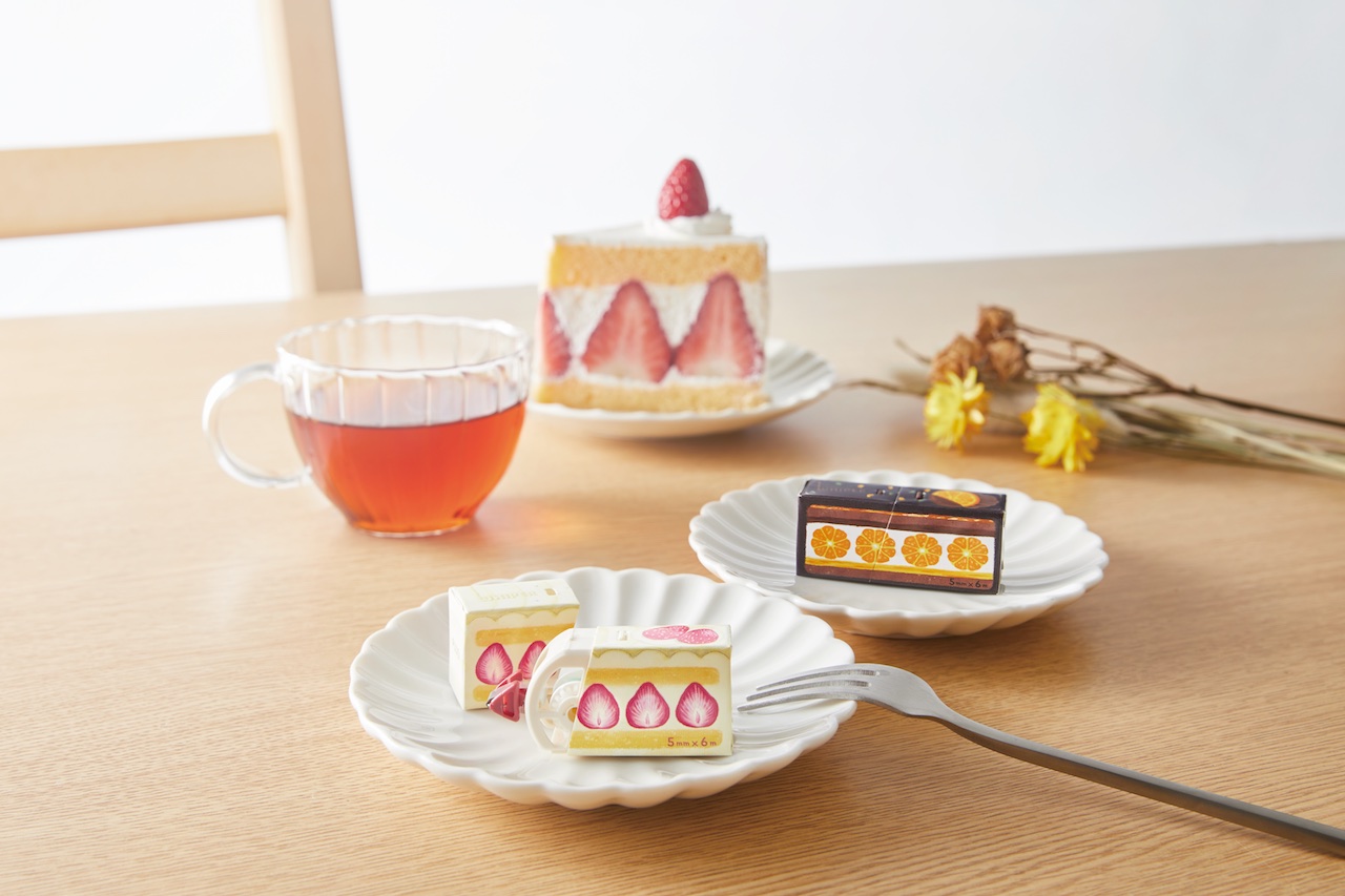 デザインは、グリーン、ピンク、ボタニカルグリーン、ブルームピンクの定番4種類に加え、萌え断※2 さん必見の限定デザインとして、イチゴショートケーキ、ショコラオレンジの2種類を発売する。箱型形状のコンパクトサイズで、使い切りタイプ。