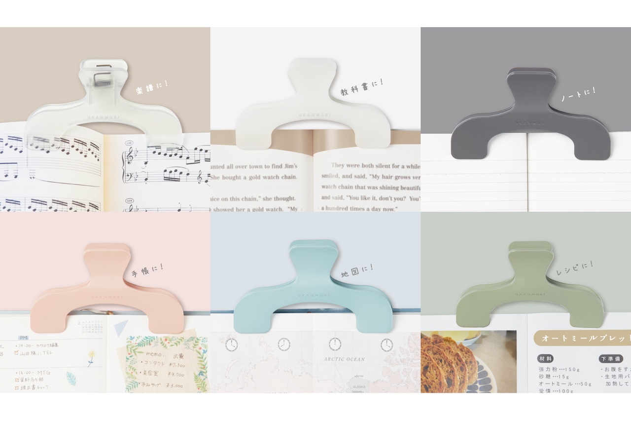 サンスター文具は、ウカンムリの形が特長で、見たいページを開いたまましっかりキープできるブックストッパー『ウカンムリクリップ』6月下旬より発売。