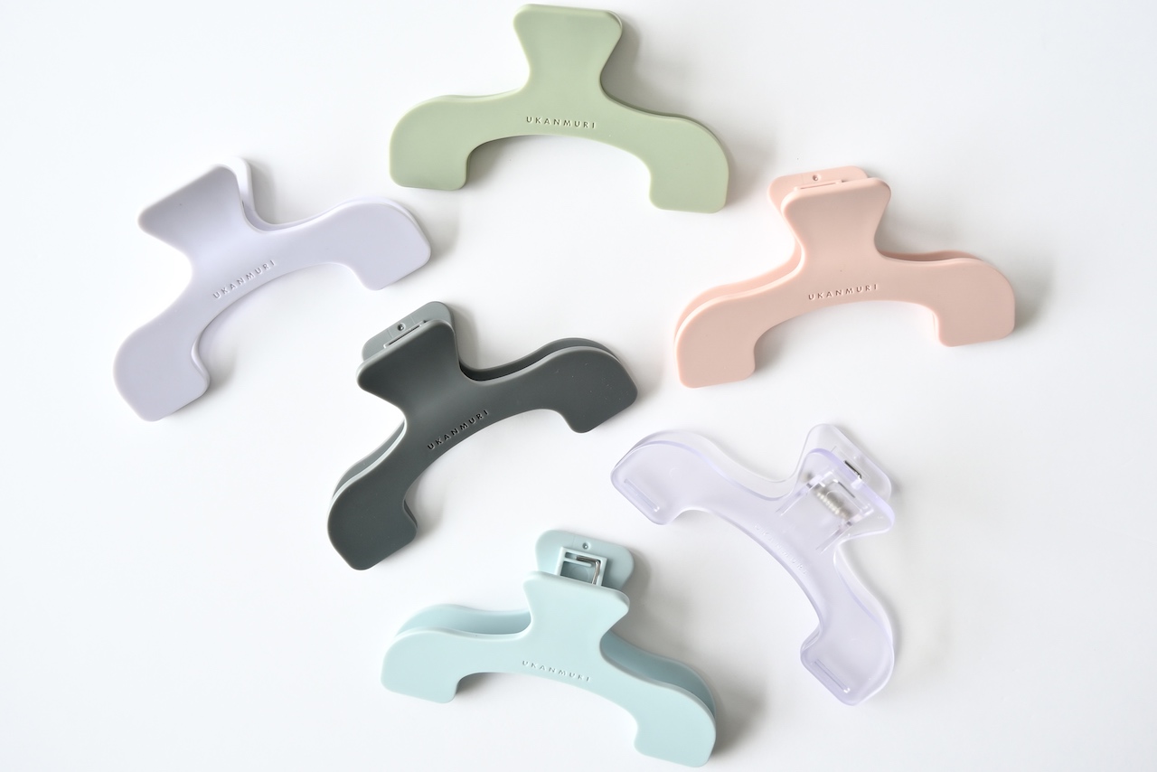 「ウカンムリ」の形が特長のブックストッパー。クリップ2点で本の背表紙を避けて留めることができるので、本の内容も見やすく、厚めの教科書や参考書なども開いたまましっかり固定できる。本の中央部分を挟まないので、ページの開き癖もつきにくい。
