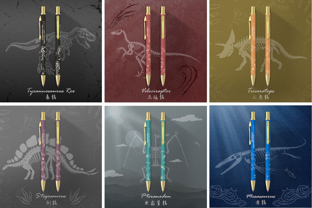 先史時代からインスピレーションを受けて「IWI」は、機能性と想像力を組み合わせた筆記具愛好家や恐竜好きの人々を魅了するコレクションを作製。この新しいゲルインクボールペンシリーズでは、さまざまな恐竜種をフィーチャーしたデザインが特徴的で、これらの古代の生き物を筆記具の形で蘇らせている。