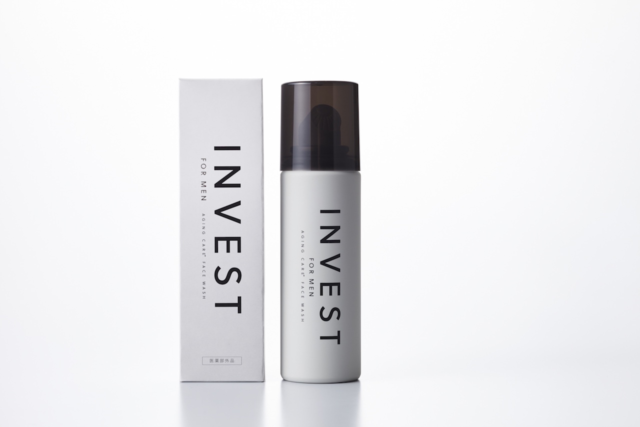 INVESTは、洗顔とシェービングの2WAYで使える「濃密泡洗顔」、15,000ppmの炭酸微粒子ミストが広がり肌を整える「炭酸ミスト化粧水」がセットになっている商品。乾燥しやすくテカリやすい男性特有の肌質に着目し、医薬部外品の商品として3年もの期間を経て開発。