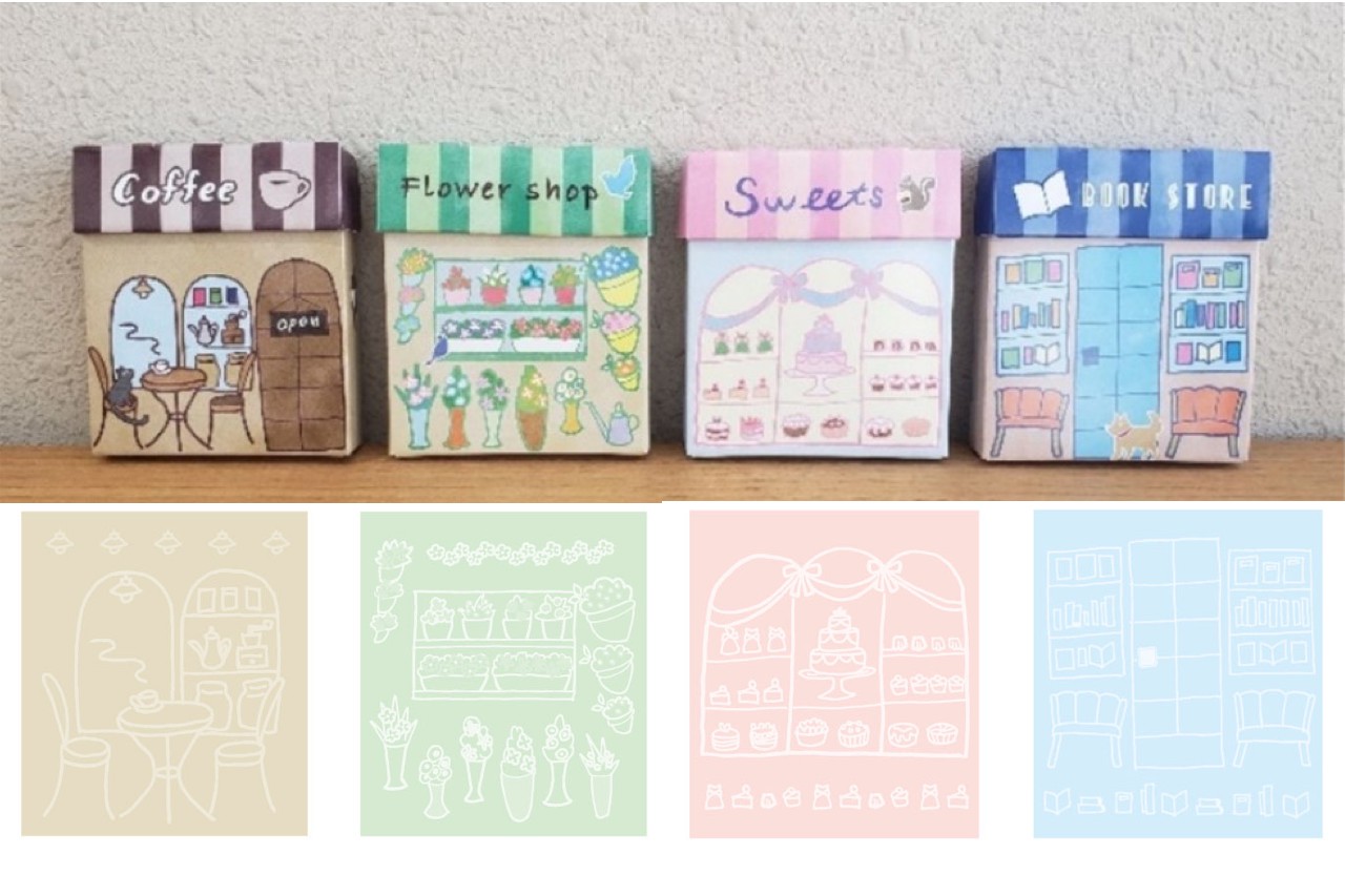 種類:4種(カフェ、フラワーショップ、スイーツ、ブックストア)