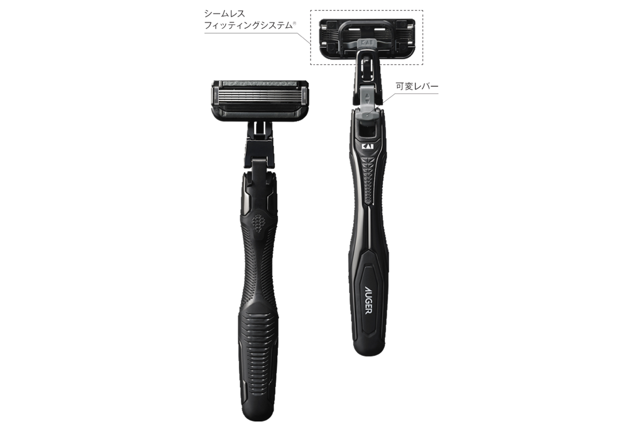 可変レバーを上下するだけで角度変更できるヘッドと、アロエ+ビタミンE配合のスムーザーを上下に配置し、なめらかな剃りごこちと逆剃りのしやすさを追求した。