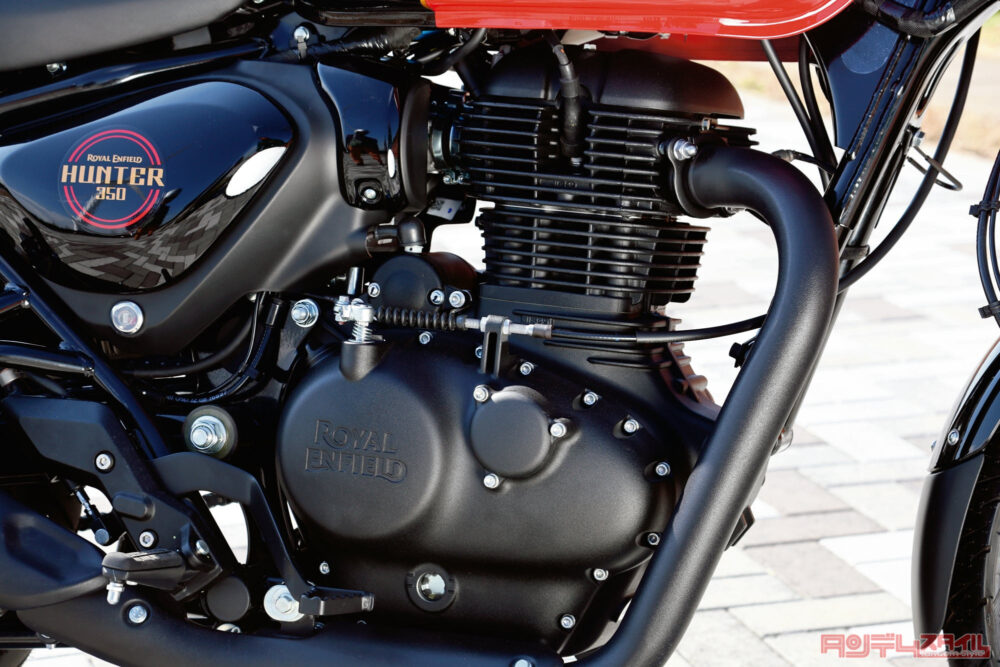 最新の環境性能を満たした黒く塗装された空冷エンジンが、車体のかたまり感も演出。加えて空冷ならではのシリンダーのフィンが機能美となっている。