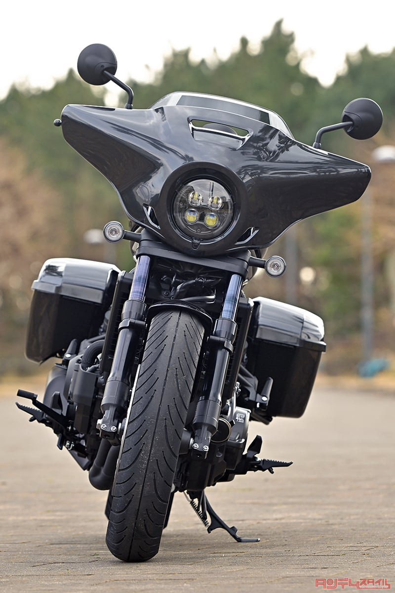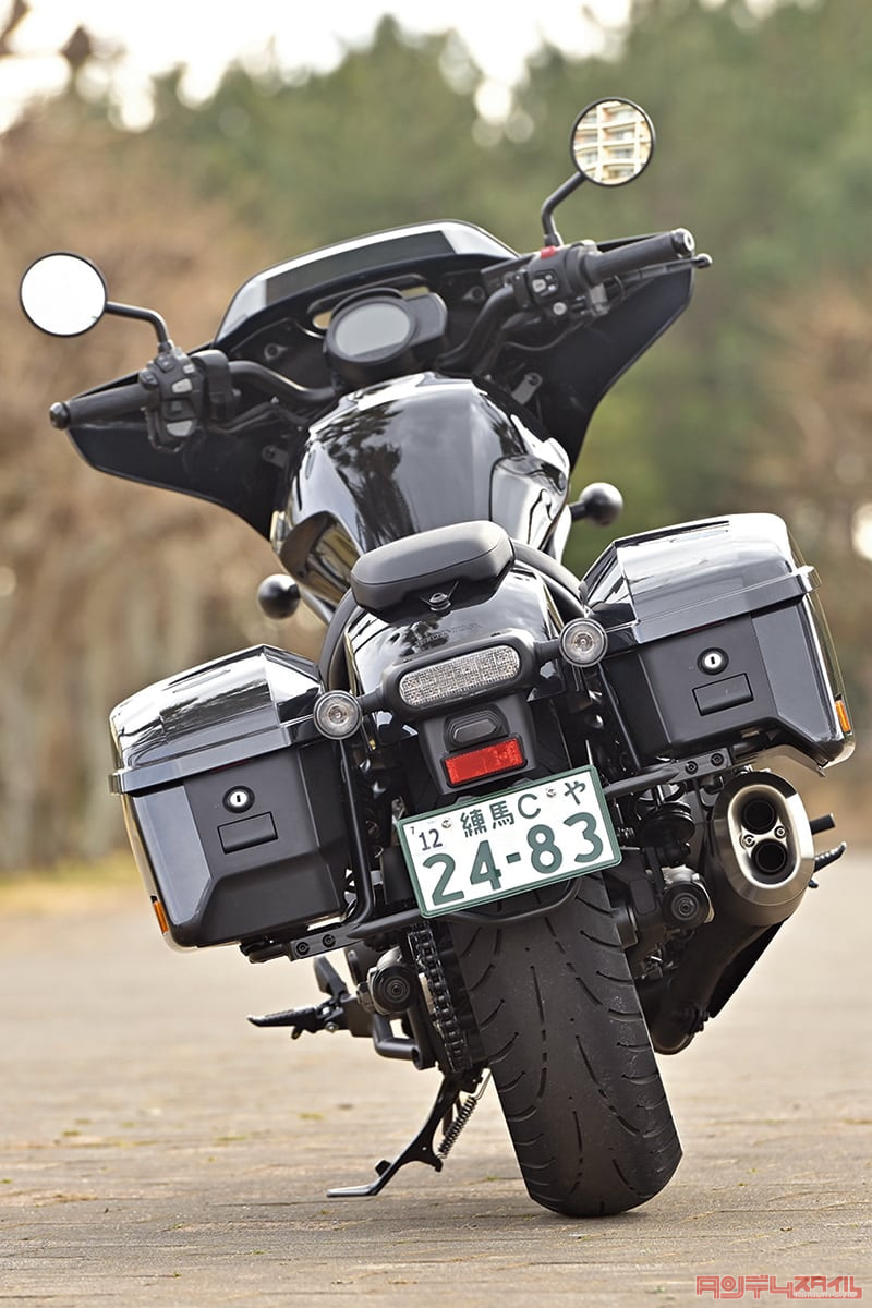もちろん日本メーカーだってだまっちゃいない。ホンダからはレブル1100をベースにバガーにしたレブル1100Tが発売された。低く構えた幅広いフェアリングに、左右に装着されたケースはリヤフェンダー形状に合わせたデザインで、実用を追求したツーリング専用モデルとちょっと違う。バガーらしいチョイワルな感じを漂わせている。ちなみに、これがホンダ初ではなく、ゴールドウイングF6BやCTX1300と早くから積極的にこのジャンルへ機種を投入してきた。