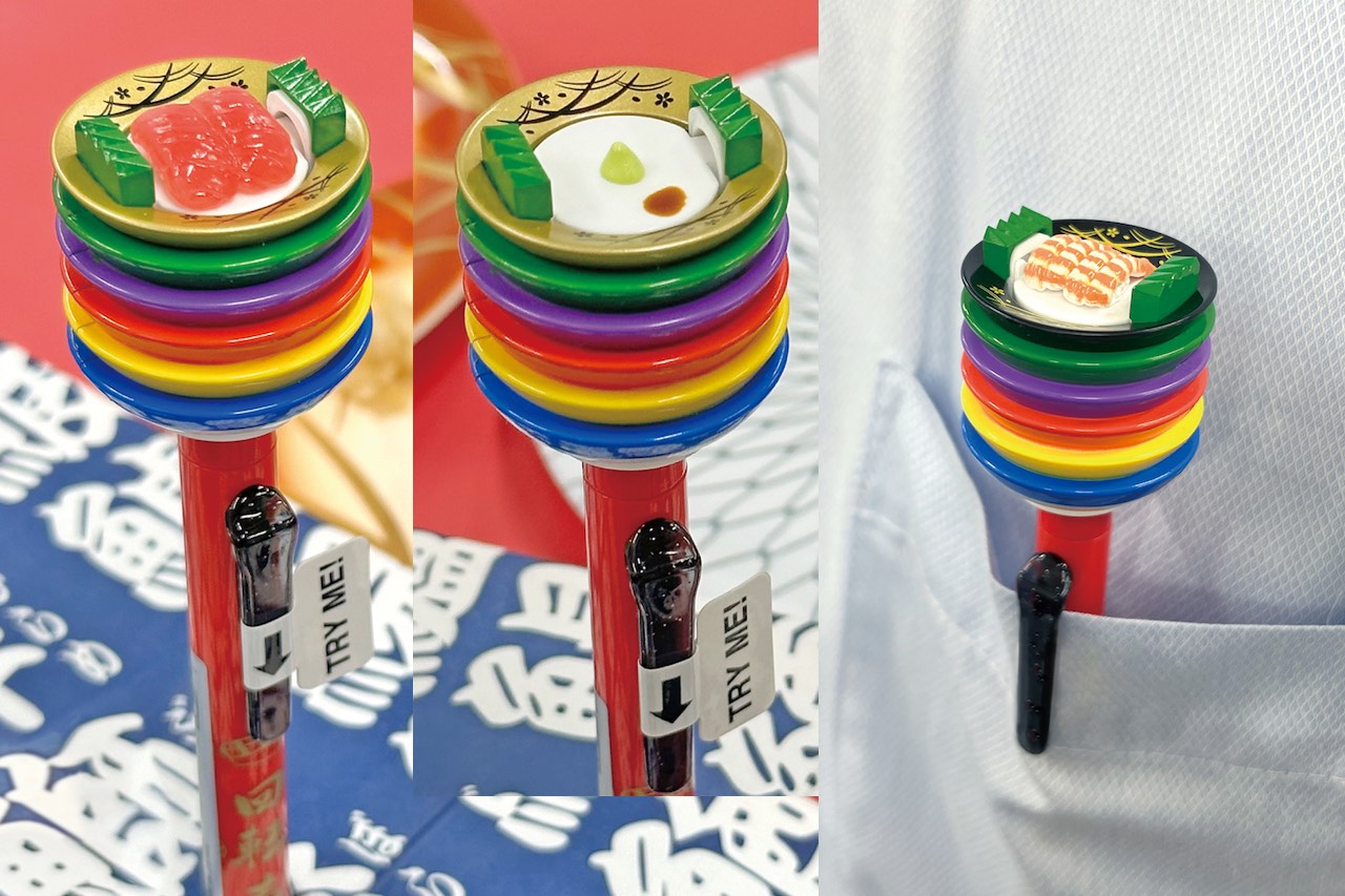電気を使わずに動くギミックを、ボールペンという小さな機構に搭載できるのは、日本ならではの設計技術の高さがあってこそ。このような精巧で高品質なものづくりや、お寿司というモチーフなど、「日本」が詰め込まれた、インバウンドのお土産にもぴったりなアイテムだ。