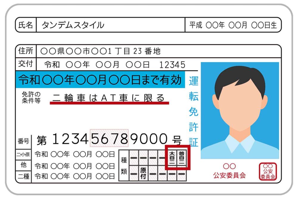 また、大型二輪用のAT限定免許もあり、その場合の条件欄の記載は“大型二輪はAT車に限る”となる。