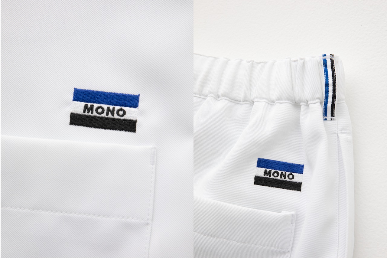プロフェッショナルから一般ユーザーまで誰しもから信頼されるブランド「MONO」とのコラボレーションだからこそ実現できた、シンプルかつ高性能な着る人を選ばないデザインが特徴だ。誰でも知っている名品、モノ消しゴムの刺繍を配し、ボールペンが収納できるペンポケットやスマートフォンも入る小物ポケット、ループなどを搭載した機能的な設計を体現したスクラブで、医療従事者に新しいスクラブの楽しみや感動をつくれると考えている。