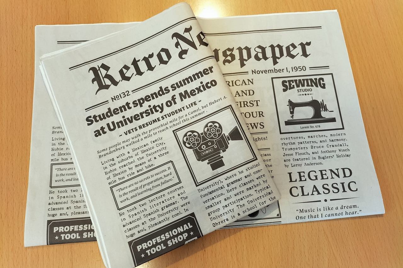 英字新聞風はもちろんのことアンティーク、レトロ、ファンシー調など12種類を2枚ずつ計24枚のセットで販売する。TONICHIのインテリアコーディネートなどを担当する外国人社員のオリジナルデザインなので、他の新聞やラッピングと被る心配もない。