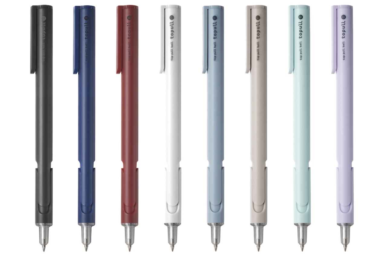 「トプル」という商品名の由来は、先端を引いて芯を出す仕組みを“トッププル機構”と名づけたことからきている。『トプルB』の新感覚のノックをぜひ一度体感し、ボールペンの進化を感じてみよう。