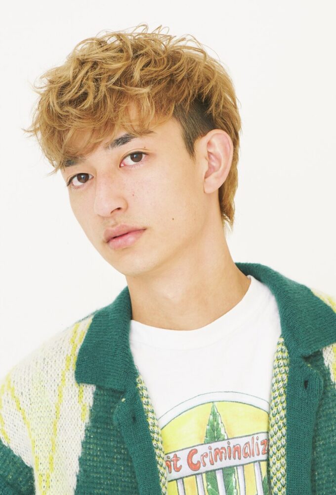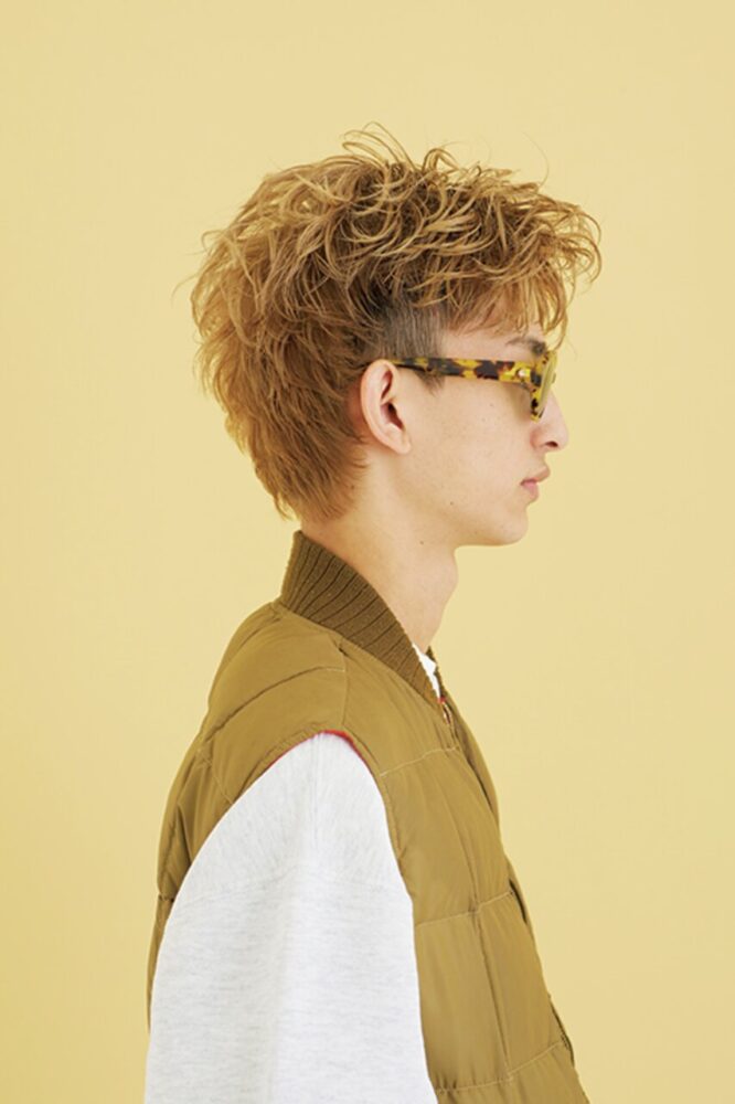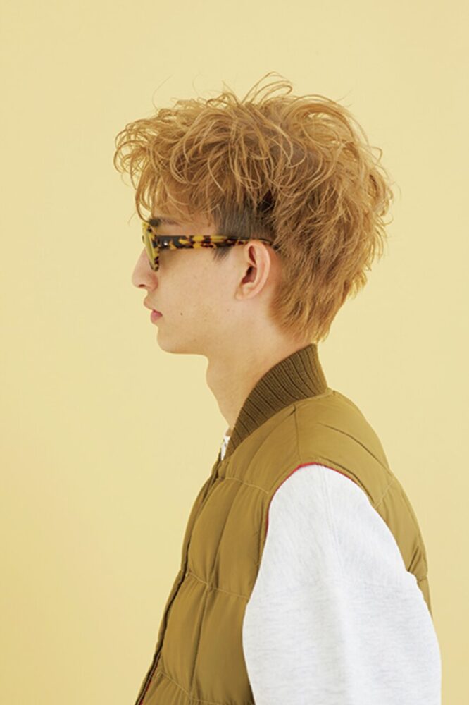 男らしい縦長フォルムを引き出すため、トップの髪はフォワード方向に流してフロントをボリュームUP! 絡み合うスパイラルのカール感が主役級の存在感を放つ。ツーブロだからメリハリ感もピカイチだ。