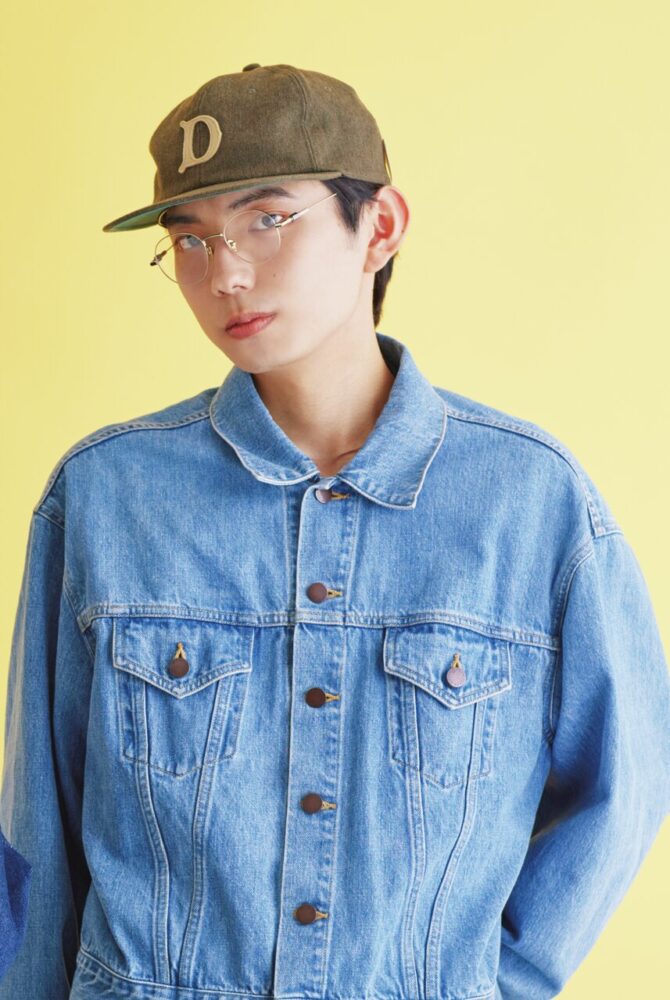 定番のキャップは、トレンドの90年代テイストをミックスすると新しい雰囲気に。ポイントはキレイめに仕上げること。ジャケットが大きいぶんヘアはフロントを後ろに流してタイトにして全体のバランスをとった。デニムはカジュアル感があるけど、流行のセットアップやつなぎなどのキレイめシルエットなアイテムを選ぶことで、キャップとの相性がよくなる。
