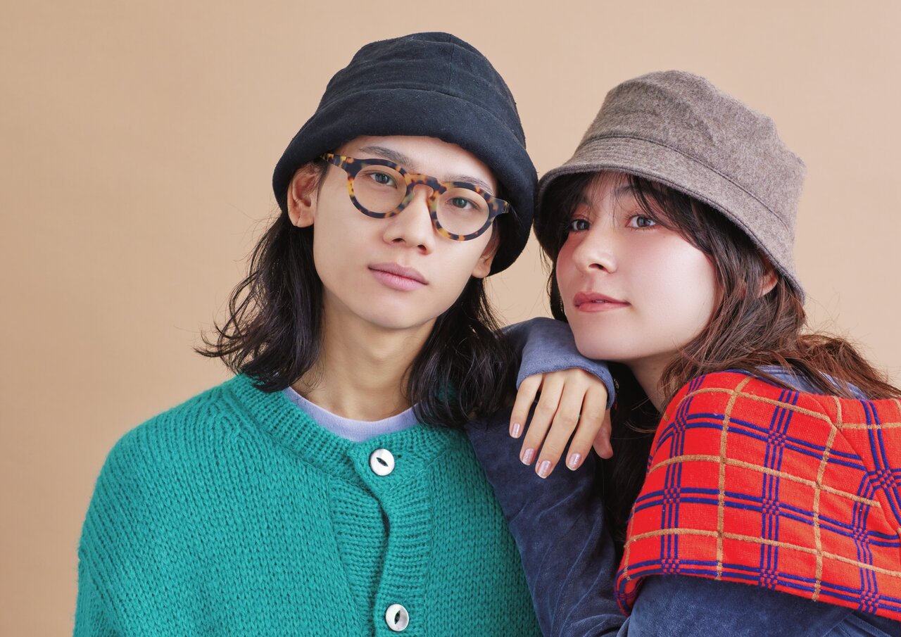 ロングウェーブを生かすため、ツバ狭めのハットをリンクコーデ。髪を耳にかけて顔まわりを出し、メガネでバランスをとった。こちらもやさしめにかぶると抜け感が出る。帽子の素材をウールにすることで季節感を出しつつ、カジュアルすぎないちょっとオトナな雰囲気に。
