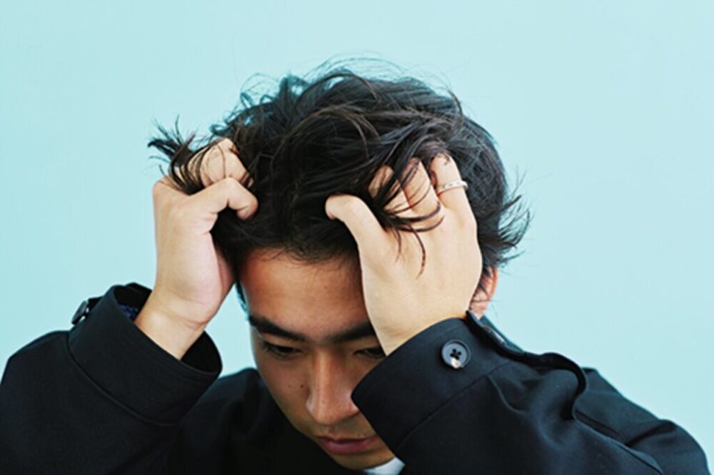 ベースはショートのセンターパート。バームをもみ込み、前髪を6:4ぐらいで分ける。毛先はハネさせる。 使用スタイリング剤:ヘアバーム/レタッチ