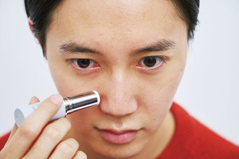 スティックタイプのものは肌に直塗りして使えて便利。おでこ、小鼻など油分や毛穴が気になる部分に当てて塗り込む。