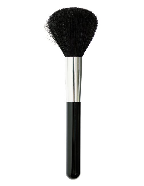 パウダーはブラシを使うと簡単。ふわっと薄くのせることができる。粉が落ちてくるので上から、額、頬、あごの順に行う。
