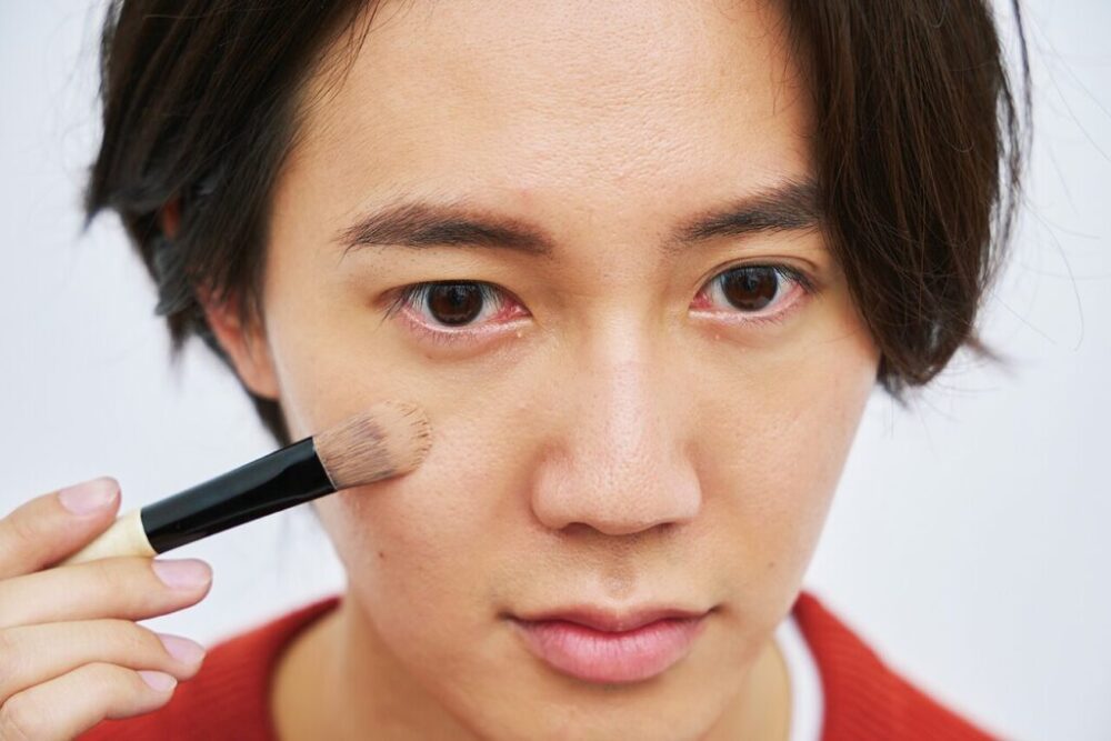 「気になる色味を補色で打ち消すときれいにカバーできます。クマやヒゲはオレンジを含む色、ニキビ跡や赤みはベージュ系を選んで。ベージュの明るさがいくつかある場合は、できるだけ自分の肌に近いほうを選ぶと自然」