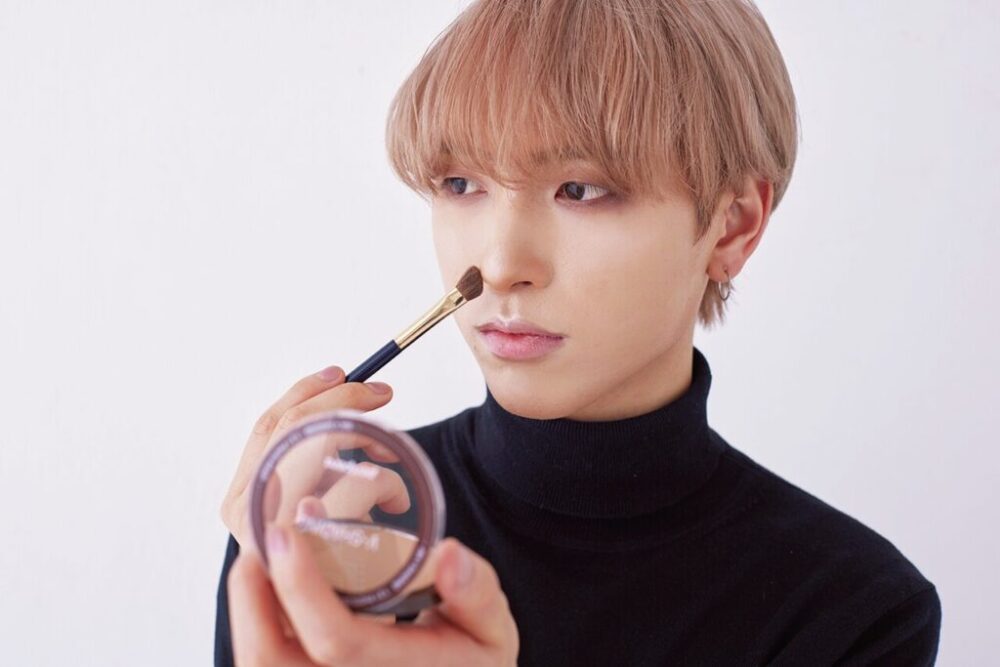 「眉毛はしっかり描きます。アイドルに限らず俳優さんもしっかりめですよね。それから、肌はツヤ感があるのでパウダーはつけないか控えめにします。あと、骨格をキレイに見せたいのでシェーディングはマスト。欧米人に比べ顔の凹凸が少ないので、ファンデーションだけより、シェーディングやハイライトで立体感を出すと見た目が変わります。特に男性は何割増しかかっこよく見えますよ」