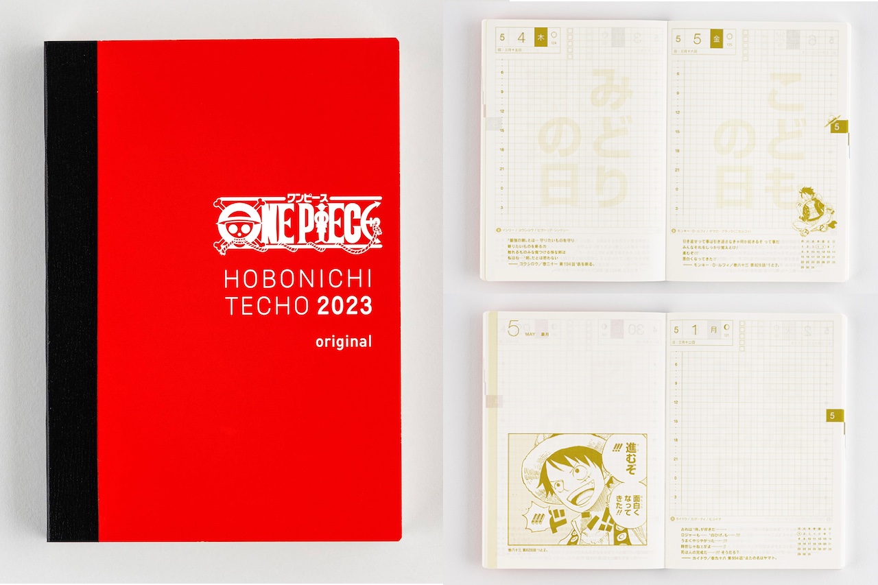 A6サイズ・1日1ページの手帳本体「ほぼ日手帳オリジナル」を、『ONE PIECE magazine』特別版としてつくった。カバーだけでなく手帳の中までコラボレーションを行うのは、「ほぼ日手帳」初。原作から抜き出した言葉やイラスト、そしてキャラクターの誕生日も365日分掲載。巻末のおまけページまでも『ONE PIECE』仕様。表紙は主人公、モンキー・D・ルフィのイメージカラーである赤に『ONE PIECE』のロゴを加えた。