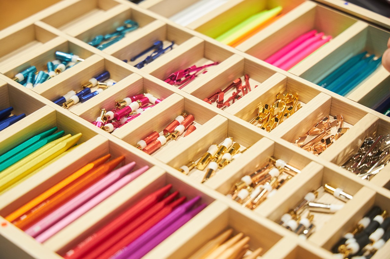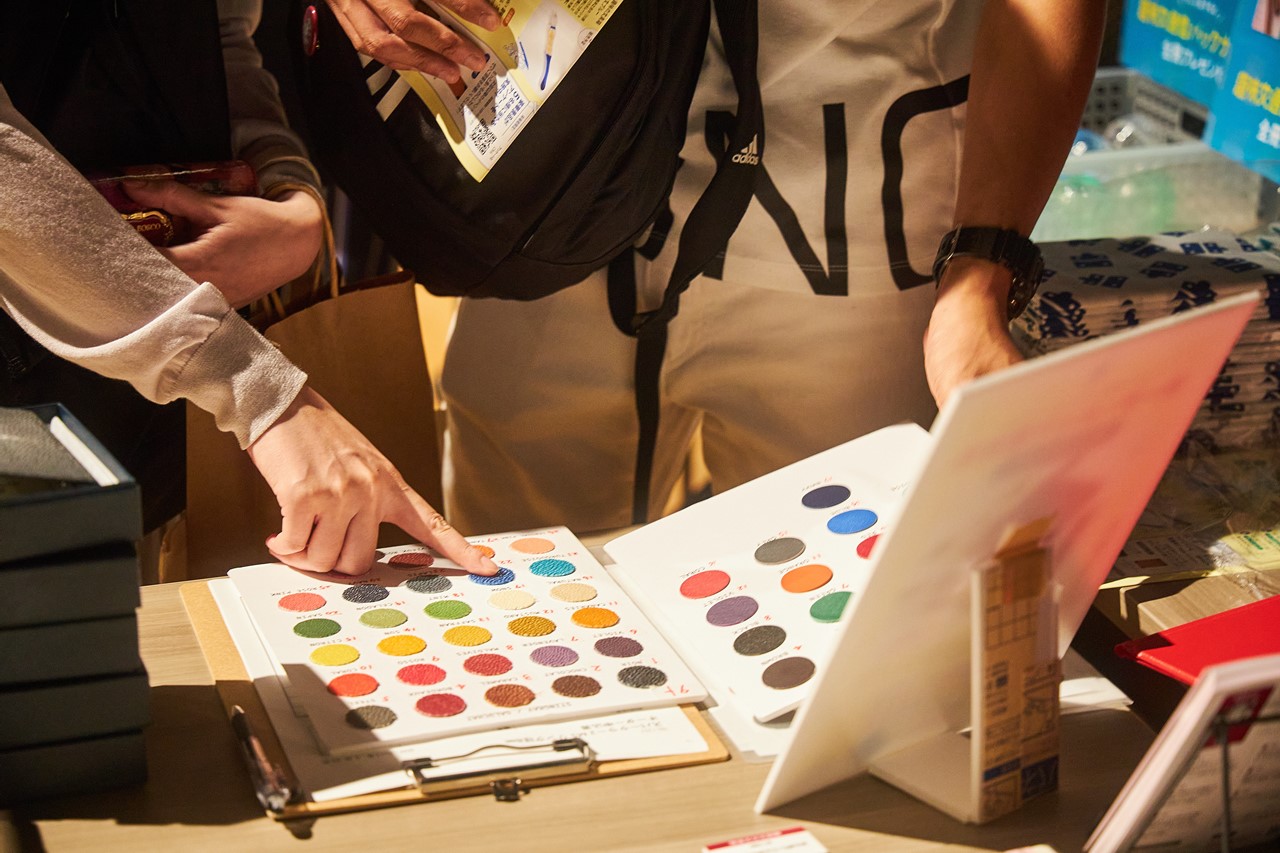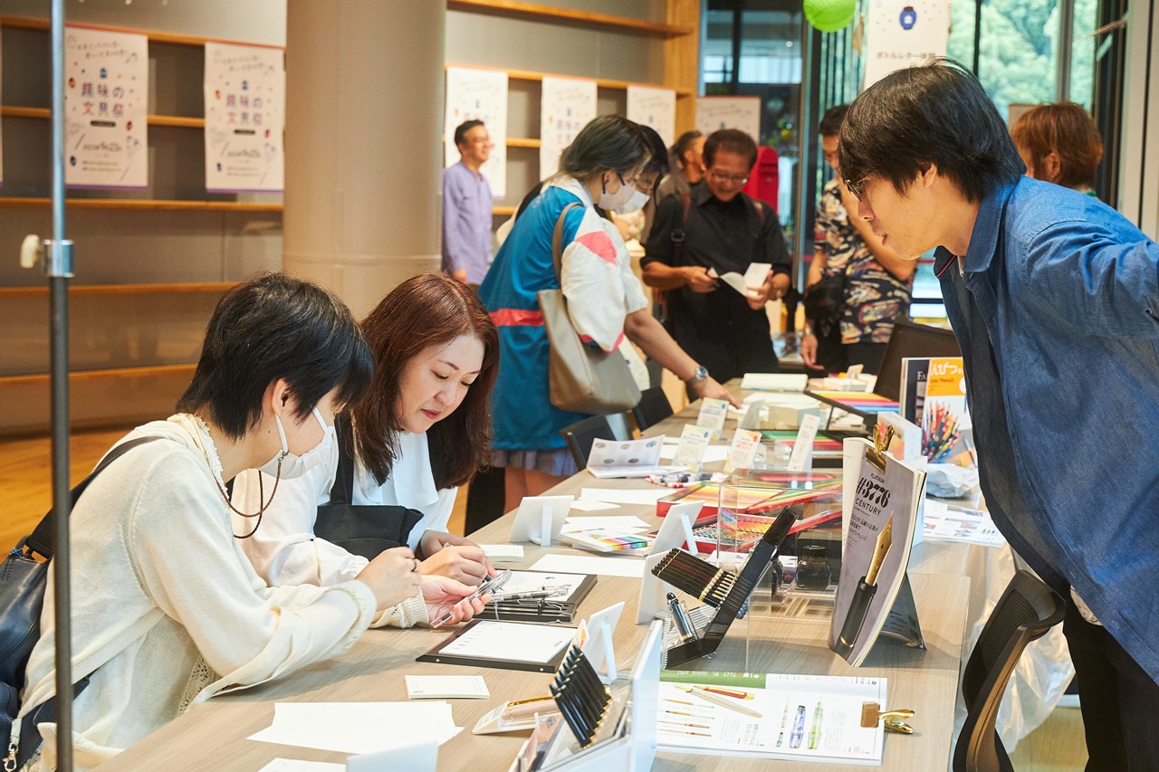 各社協力のもと、万年筆やインク、色鉛筆、紙を試し書きできるコーナーも設置した。初めて万年筆を手に取る方からは「万年筆って書きやすい」「欲しくなった」の声も。試し書き後は早速物販エリアに駆け込む来場者も。
