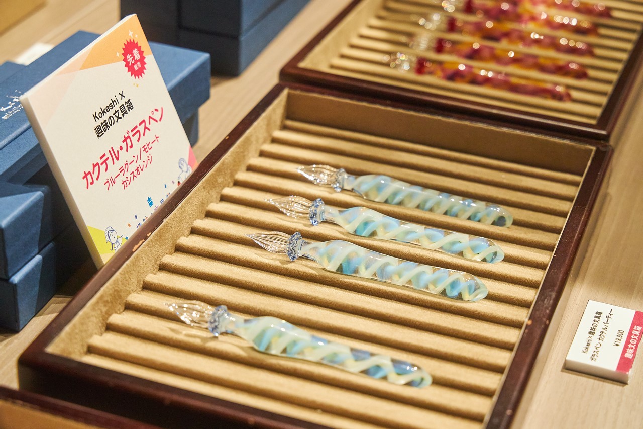 趣味の文具箱が人気のガラスペン工房「Kokeshi」や「川西硝子」とコラボした、イベント限定ガラスペンも数量限定で抽選販売した。「Kokeshi」のガラスペンはガラス作家・藤田えみさん得意の「リボンケーン」という技法を応用していて、カクテルをモチーフにした鮮やかで爽やかなカラーリングが特長だ。
