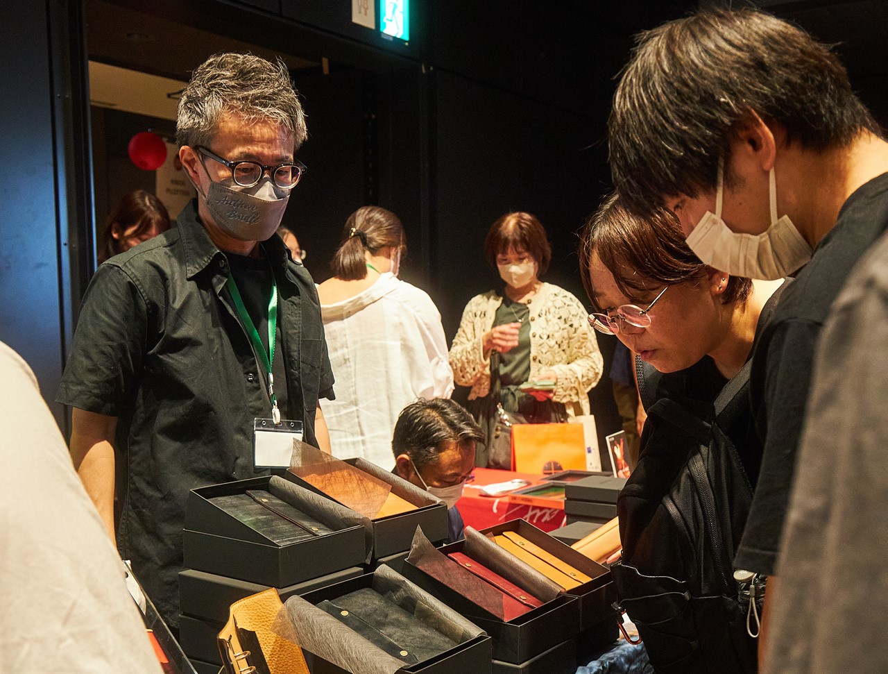 会場でしか手に入らない限定品も多数販売。限定品目当ての来場者が大勢詰めかけた。ノックスのブースでは、フラッグシップモデル「オーセン」のスペシャル版「ブライドルレザー×ナチュラルタンシュリンク」のバイブルサイズフラップタイプが登場。ここでしか手に入らないシステム手帳に、誰もが興味津々。