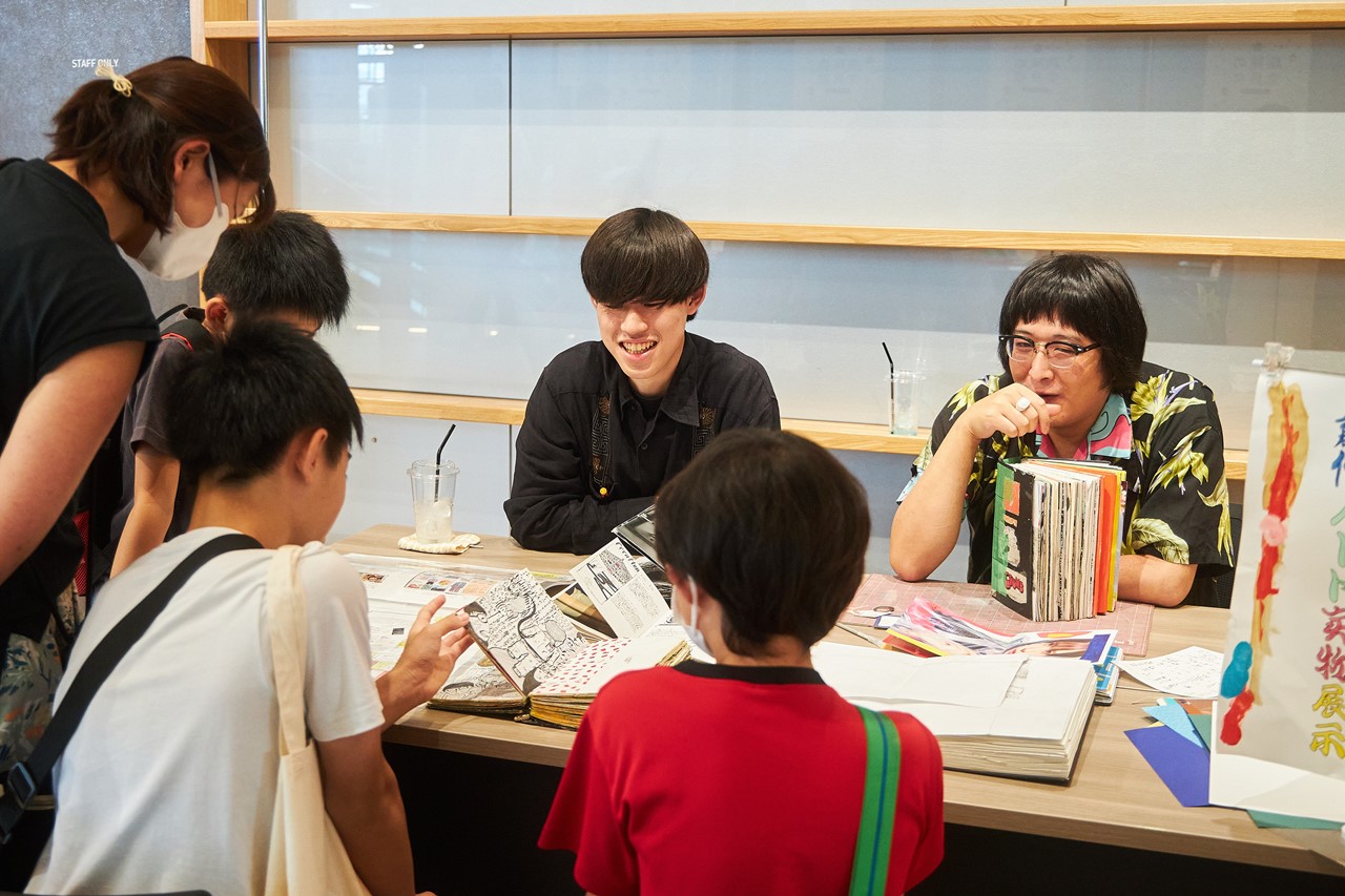 本誌で絶賛連載中のヨシムラヒロムさんも登場。手書きで繰り広げるヨシムラワールド全開の創作ノートは実物で見ると迫力満点! 「本物すげ~」の歓声が上がっていた。