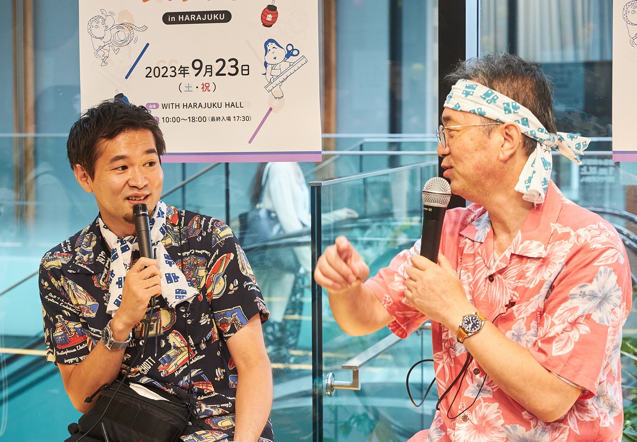 新旧編集長トークは事前に受け取った質問に答える形で進行。思い出の企画や今一番欲しい筆記具など、文具愛溢れるトークを繰り広げた。まるで親子のような仲の良い二人。
