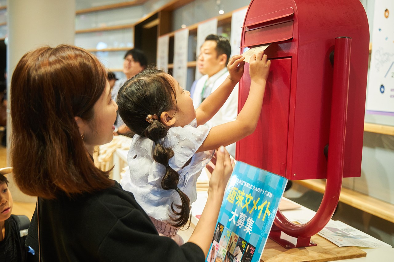 「趣味文メイト」入会者の間で行われているボトルレターの展示・体験会も実施。誰に届くかわからない手紙にたくさんの人が興味津々で参加していた。イベントでゲットしたペンも早速使って、筆欲を思う存分奮ってもらった。