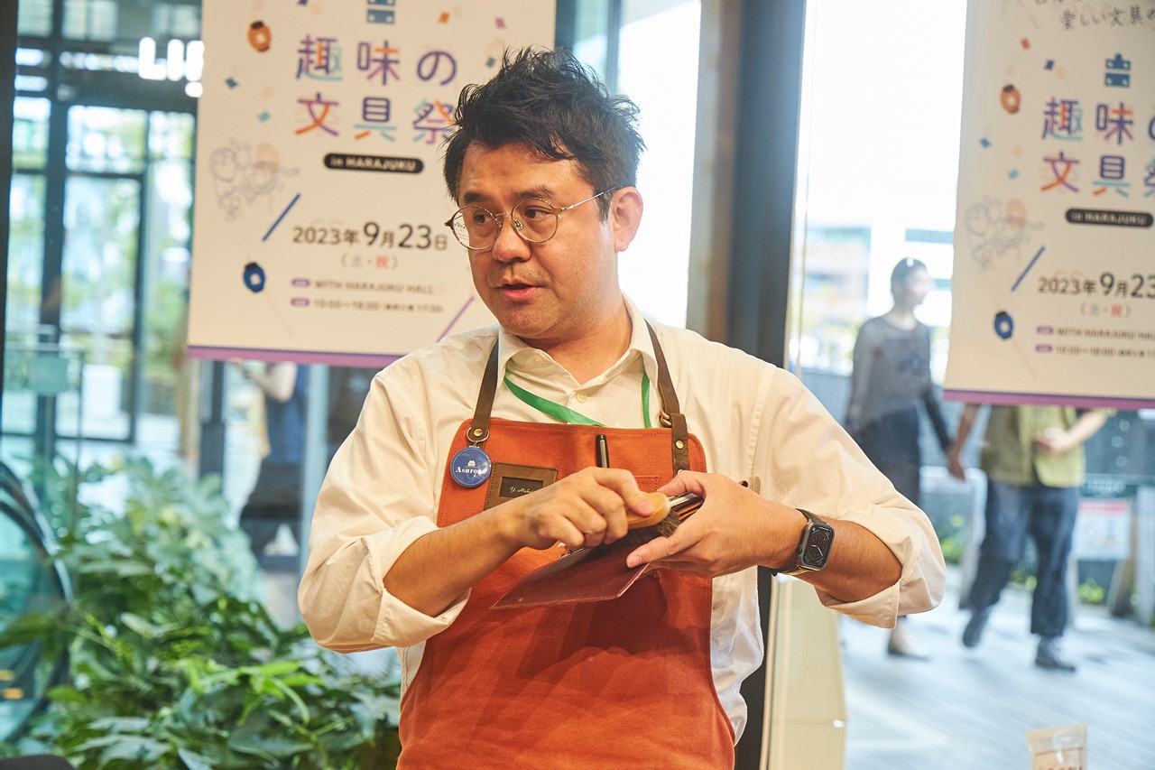 趣味の文具箱ブースでは、統括プロデューサー・清水が文具選びのアドバイスもしながら、趣味文オリジナルのシステム手帳も販売。通常はネットだけで販売しているので、初めて見る現物に多くの人の物欲が刺激されていた。ガルーシャの表面と中面のカラーを自由に選べる、システム手帳のオーダー受注会も実施。ガルーシャは海の宝石とも呼ばれるエイ革で、手触りが良くて独特の輝きを放つのが魅力だ。オーダーはまるで宝石を選ぶような気分を味わえる。