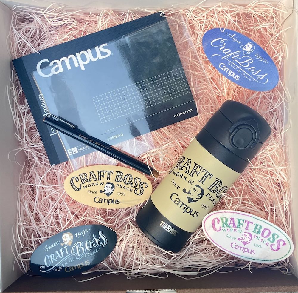 ■賞品および当選数:抽選で20名様に「外で一息つけるセット」をプレゼント。大人キャンパスのノートカバーや「クラフトボスx大人キャンパス」のコラボのオリジナルペン、オリジナルサーモスを詰め合わせた外出先でホっと一息つけるセットとなる。